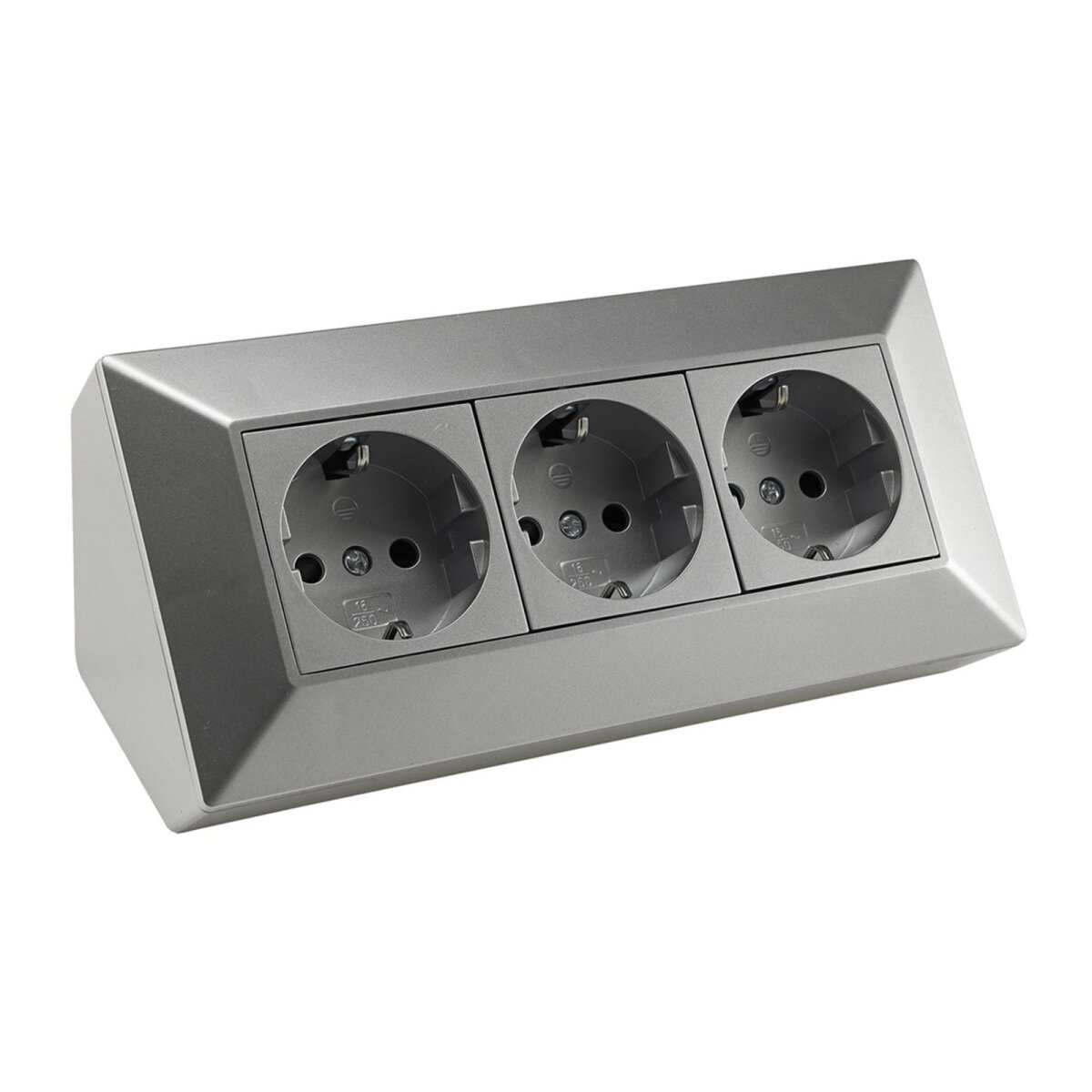 Der 3-fach Steckdosenblock in silber bietet Ihnen nicht nur 3 Steckdosen für Ihre Geräte, sondern auch eine praktische 45° Anwinkelung des Gehäuses für die einfache Montage auf Arbeitsplatten oder Werkbänken. Der Metall-Innenrahmen sorgt für eine stabile Bauweise, während die bereits vorverkabelten Steckdosen eine schnelle Installation ermöglichen. Dieser Steckdosenblock eignet sich ideal für den Betrieb an 230V / 50Hz und kann mit einer maximalen Leistung von 16A und 3.600W betrieben werden.