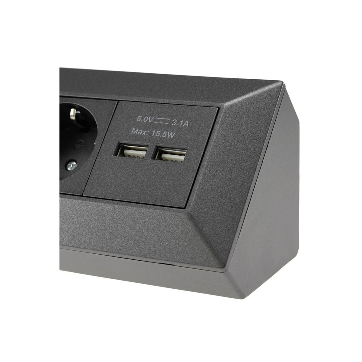 Die zwei USB-Anschlüsse mit einer Gesamtleistung von 3,1A erlauben das gleichzeitige Laden von Smartphones, Tablets oder anderen USB-Geräten. Dank des Metall-Innenrahmens wird für eine hohe Stabilität und sichere Befestigung gesorgt. Der geringe Standby-Verbrauch von nur 0,1W macht den Steckdosenblock besonders energieeffizient.