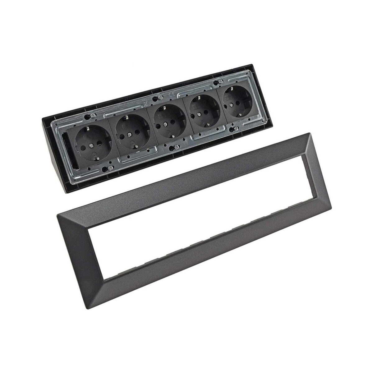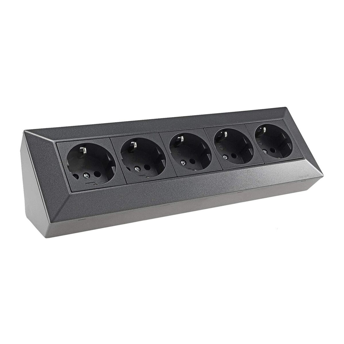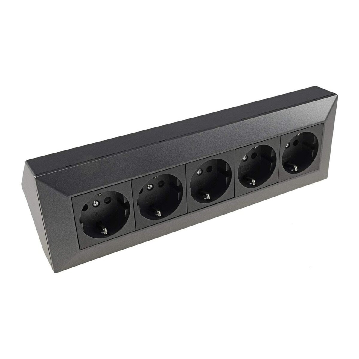 Dieser 5-fach Steckdosenblock in anthrazit bietet Ihnen eine praktische Lösung für Arbeitsflächen, Werkstätten und als Unterbausteckdose. Der Block ist mit 5 Schutzkontakt-Steckdosen ausgestattet und verfügt über ein 45° gewinkeltes Gehäuse, das eine optimale Ausnutzung der Steckplätze gewährleistet. Das dreieckige Design ermöglicht die Montage sowohl vertikal als auch horizontal und macht ihn ideal für den Einsatz in Ecken oder unter Küchenschränken. Der Metall-Innenrahmen sorgt für zusätzliche Versteifung und Zugentlastung der Anschlussleitung. Dank der vorverkabelten Steckdosen ist die Installation besonders einfach. Mit einer maximalen Leistung von 16A und 3.600W bietet der Steckdosenblock ausreichend Power für Ihre Geräte. Er ist erhältlich in den Farben weiß, silber, schwarz und anthrazit.