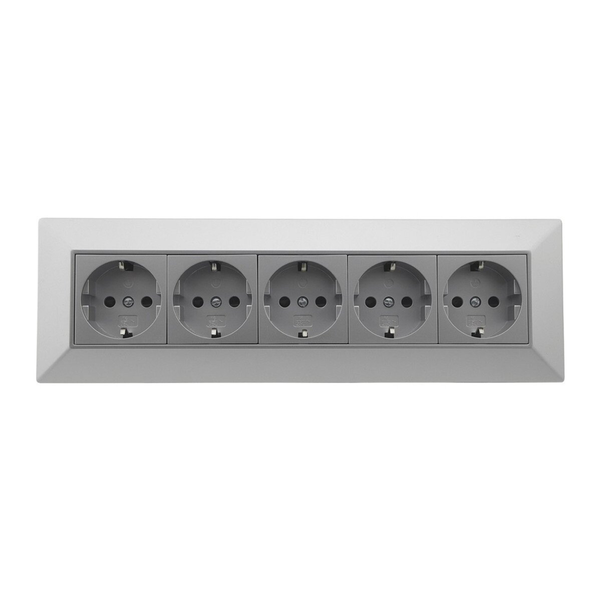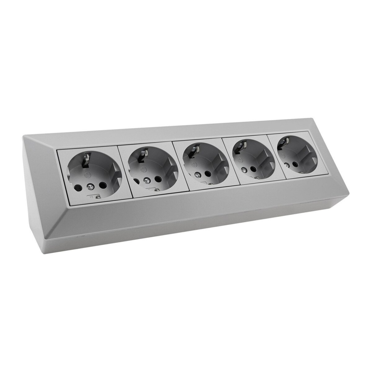 Dieser 5-fach Steckdosenblock in silber ist eine praktische und platzsparende Lösung für Ihre Arbeitsflächen, Werkstätten oder als Unterbausteckdose unter Küchenschränken. Mit 5 Schutzkontakt-Steckdosen und einem 45° gewinkelten Gehäuse bietet dieser Block eine optimale Ausnutzung der Steckplätze. Das dreieckige Design ermöglicht eine ideale Montage in Ecken, sodass Sie Ihre Arbeitsfläche effizient nutzen können. Der Metall-Innenrahmen sorgt für zusätzliche Versteifung und Zugentlastung der Anschlussleitung. Alle Steckdosen sind bereits vorverkabelt, was die Installation besonders einfach und schnell macht. Dieser Steckdosenblock kann mit einer maximalen Leistung von 16A und 3.600W betrieben werden. Er ist in den Farben weiß, silber und schwarz erhältlich.