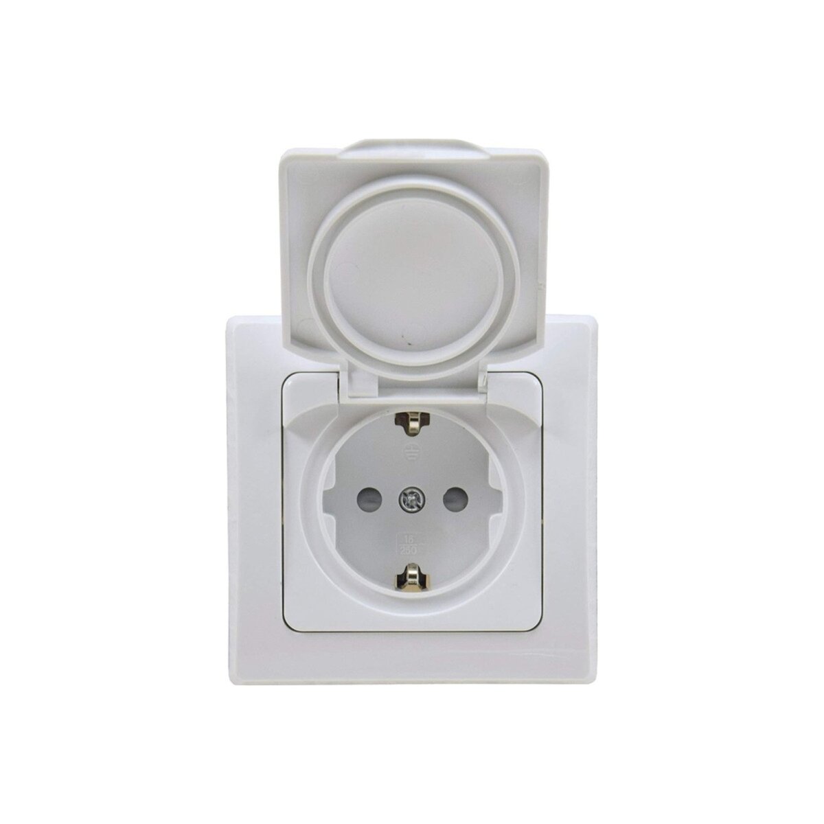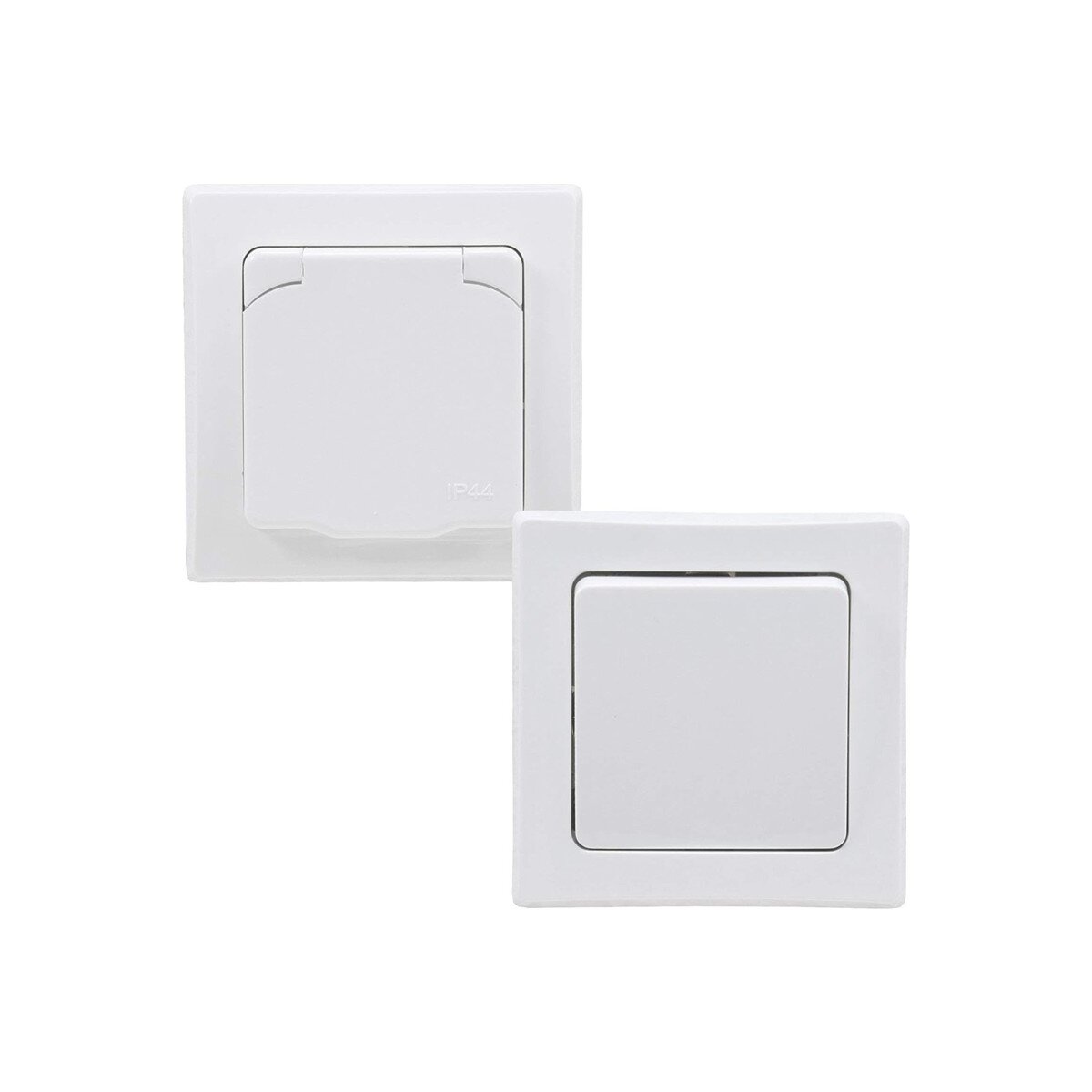 Die Steckdose ist mit einem Klapp-Deckel ausgestattet, der vor Staub und Spritzwasser schützt, und verfügt über einen sicheren Schraubanschluss für eine schnelle Installation. Der passende Schalter ist ebenfalls mit einem Schraubanschluss ausgestattet und eignet sich dank der Schutzklasse IP44 auch für den Einsatz in Feuchträumen oder auf der Terrasse.