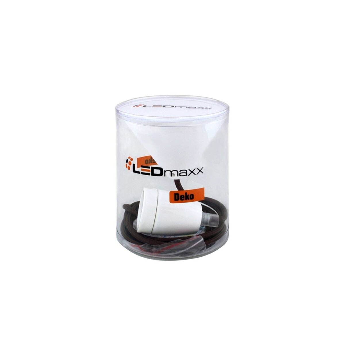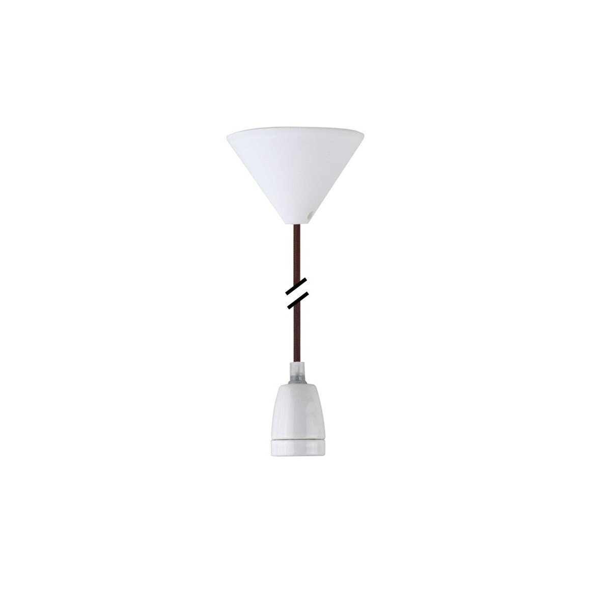 Deko Set Textilkabel braun mit Keramik-Lampenfassung E27 und weißem Baldachin