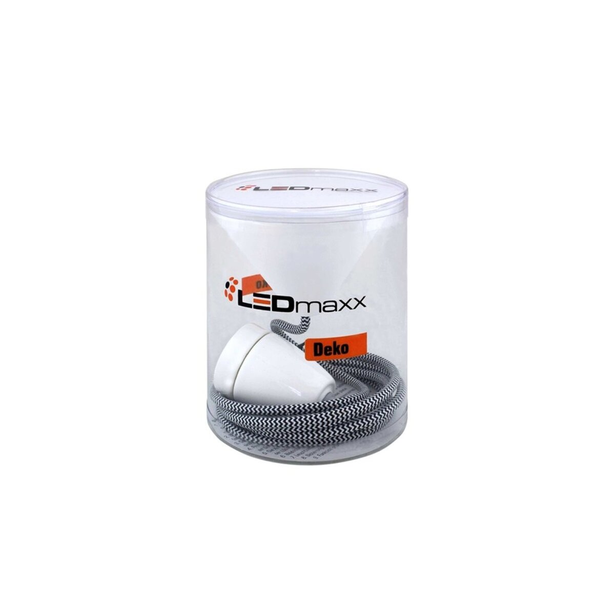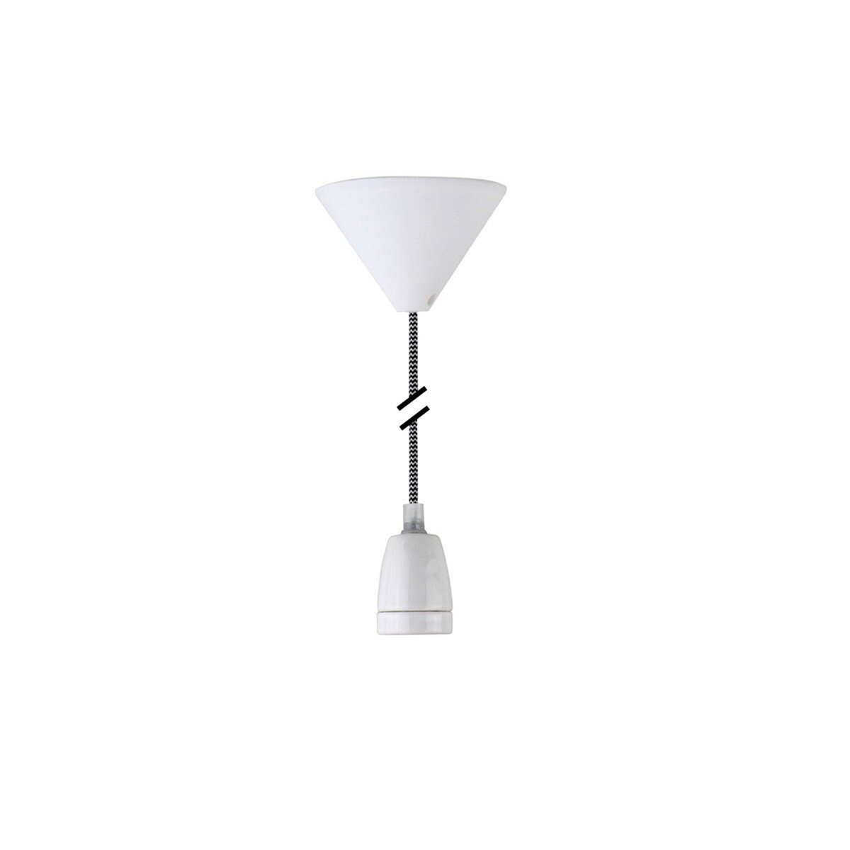 Deko Set Textilkabel schwarz-weiß mit Keramik-Lampenfassung E27 und weißem Baldachin