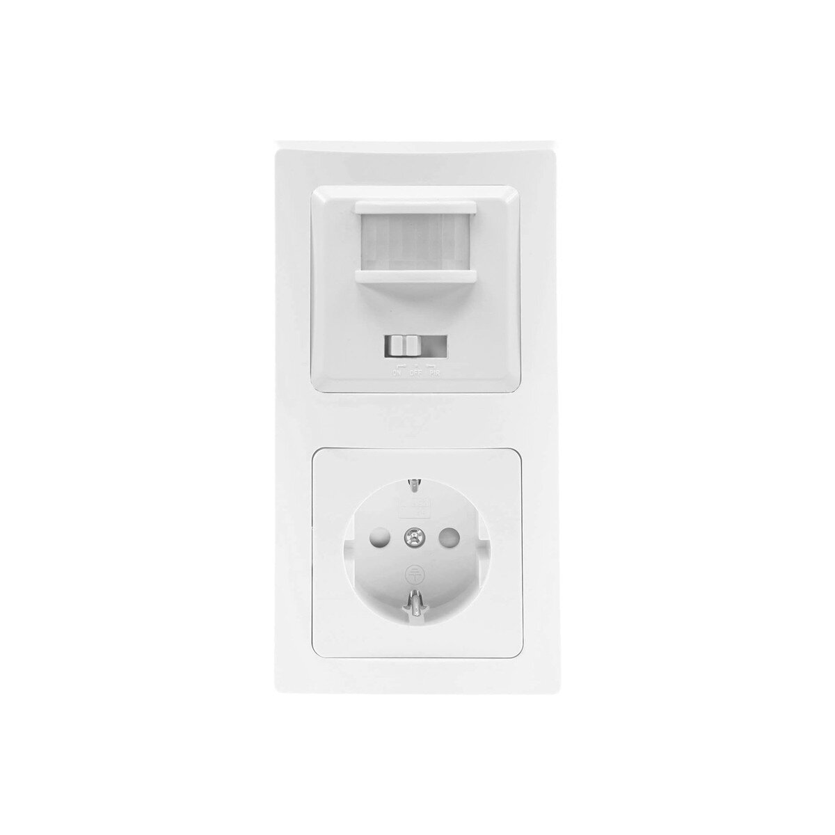 Das DELPHI Unterputz Set besteht aus einem 160° Bewegungsmelder und einer 230V Schutzkontakt-Steckdose, die in einem 2-fach Rahmen montiert werden. Diese Kombination ist perfekt für die Nachrüstung eines herkömmlichen Lichtschalters mit Steckdose. Besonders praktisch: Der 2-Draht Bewegungsmelder benötigt keinen Nullleiter, was die Installation einfach und schnell macht. Der Bewegungsmelder bietet eine Reichweite von bis zu 7 Metern und einen horizontalen Erfassungswinkel von 160°, was ihn ideal für den Einsatz in Fluren, Treppenhäusern oder anderen Bereichen macht, in denen Bewegung automatisch erkannt werden soll. Er ist kompatibel mit LED Leuchtmitteln von 3-100W sowie herkömmlichen Glühlampen bis 400W.