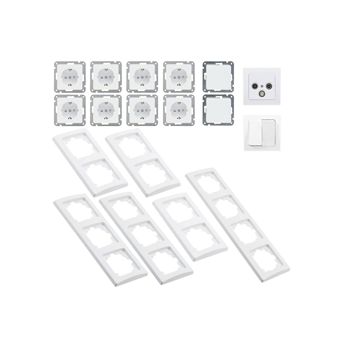 Das Komplett-Set für Unterputz-Dosen bietet Ihnen alle Standard-Komponenten für Ihre Elektroinstallation. Mit Schutzkontakt-Steckdosen, Wechsel- und Serien-Schaltern sowie einer glänzenden Oberfläche passt es perfekt in Wohnräume wie Wohnzimmer, Büro, Flur, Küche und Schlafzimmer. Das Set eignet sich sowohl für Längs- als auch Quermontage, sowohl vertikal als auch horizontal und kann mit allen Komponenten der DELPHI-Serie kombiniert werden. Die Schutzkontakt-Steckdosen bieten erhöhten Berührungsschutz und ermöglichen eine schnelle Montage per Klemmanschluss.