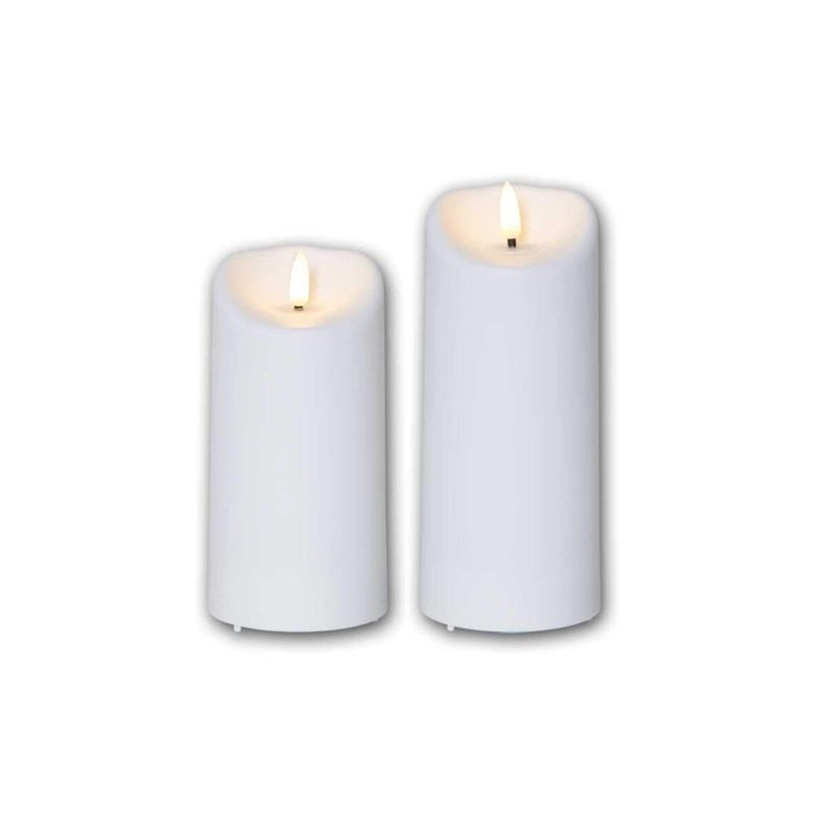 Schaffen Sie eine stimmungsvolle Lichtatmosphäre mit diesem LED-Kerzen Set, das aus zwei verschiedenen Größen (15 cm & 18 cm Höhe) besteht. Die warmweiße LED-Flamme imitiert das sanfte Flackern echter Kerzen, ganz ohne Brandgefahr oder Wachsrückstände.