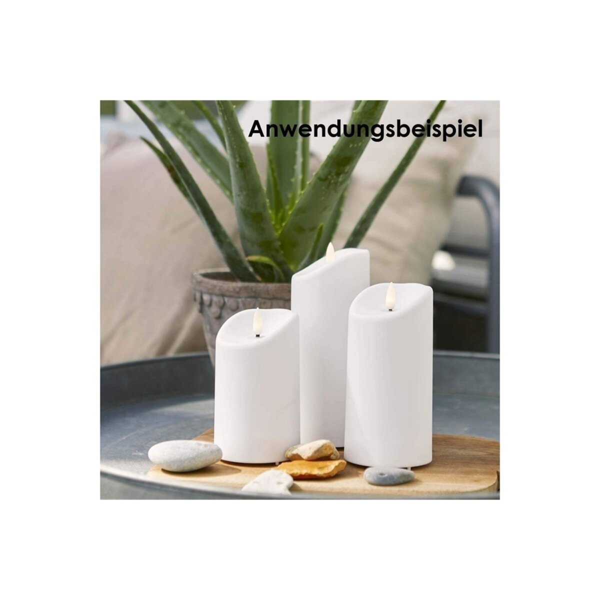 Dank der IP44-Schutzklasse eignen sich die Kerzen sowohl für den Innenbereich als auch für Terrassen, Balkone oder Gärten. Die lange Batterielaufzeit von ca. 200 Stunden sorgt für eine zuverlässige Nutzung – ideal für gemütliche Abende oder festliche Dekorationen.