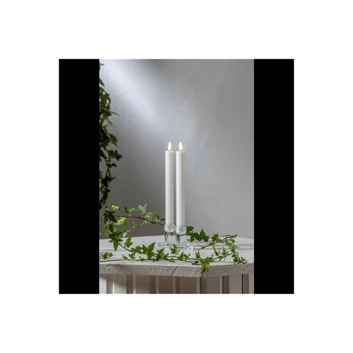 Ob für ein romantisches Abendessen, eine festliche Tafel oder als edles Wohnaccessoire – das LED Leuchterkerze 2er Set "Flamme Stripe" in Weiß verleiht jedem Raum eine stilvolle Lichtstimmung.