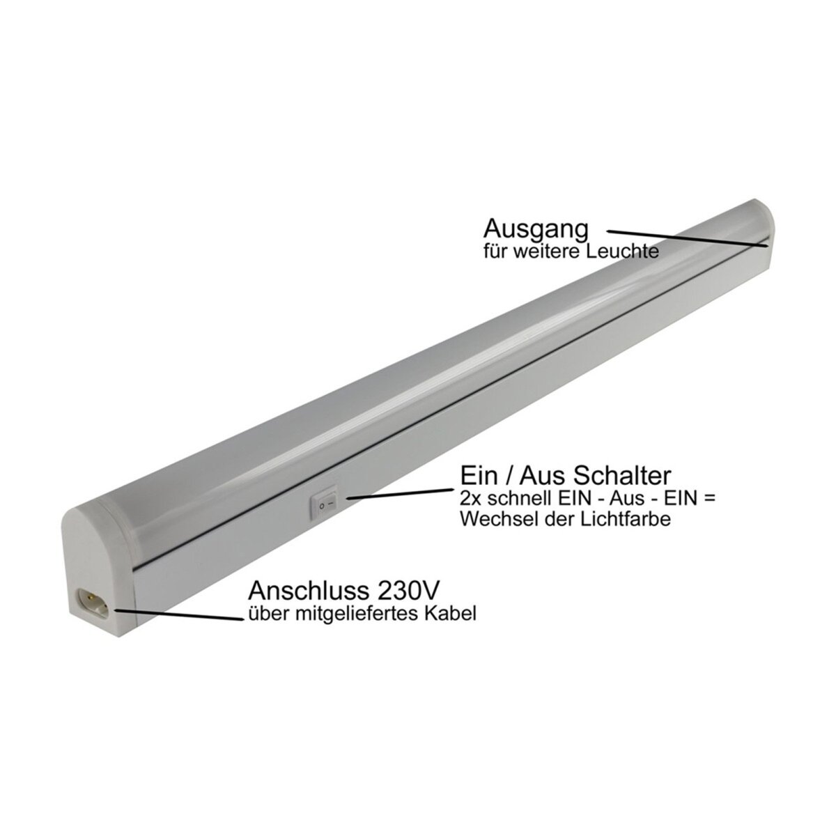 Bis zu 10 Leuchten lassen sich in Reihe schalten – jede Leuchte bleibt dabei einzeln schaltbar. Die Leuchte startet immer mit neutralweißem Licht.