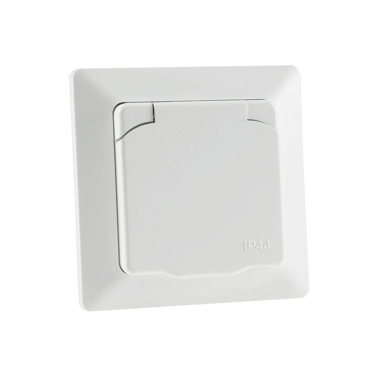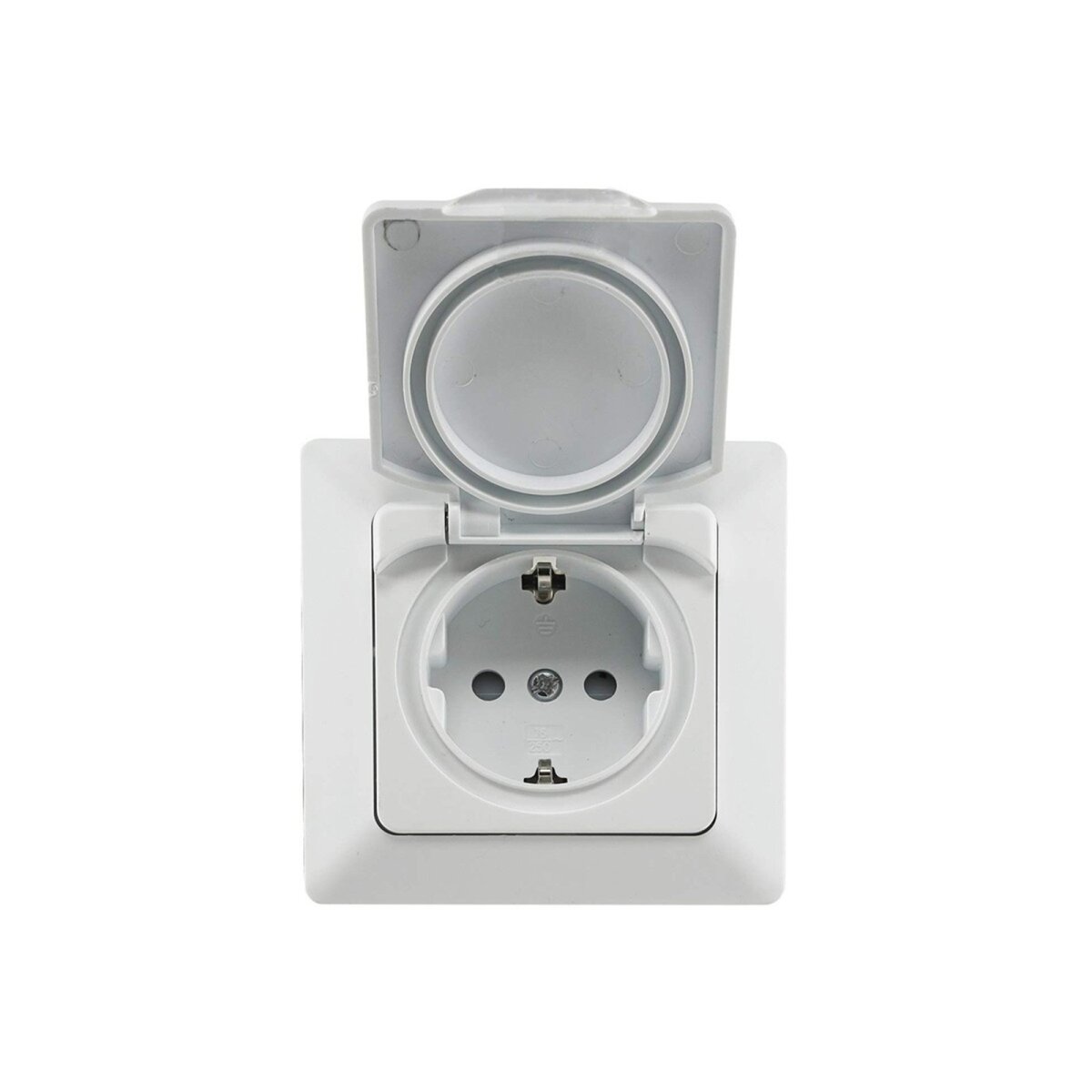 MILOS Steckdose Schalter für Aussen IP44 inkl. Rahmen 230V I Unterputz Wechselschalter Schutzkontakt-Steckdose mit Klappdeckel für Feuchträume Aussenbereich Matt Weiß