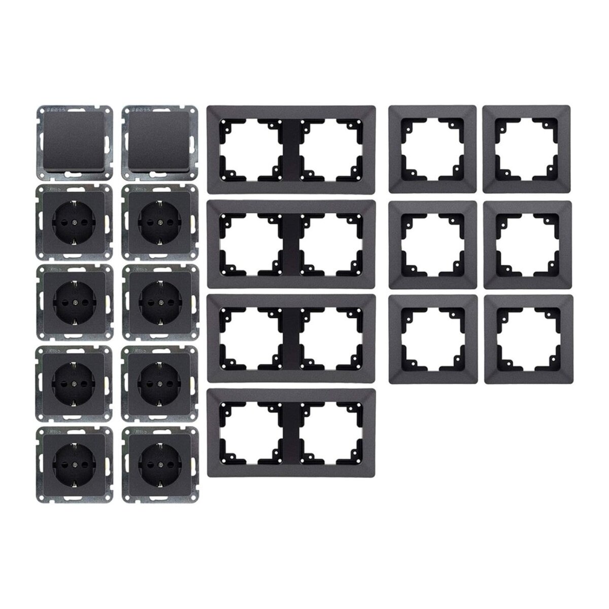 Die MILOS Serie kombiniert ausgereifte Qualität mit einer eleganten Oberfläche in Anthrazit und einer angenehmen Haptik. Die Steckdosen und Schalter sind für die Unterputzmontage in gängigen Wanddosen ausgelegt und ermöglichen eine Längs- und Quermontage – sowohl senkrecht als auch waagerecht.