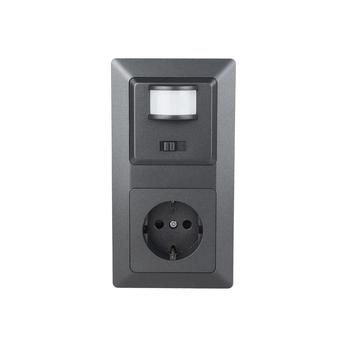 Dieses KOMBINATION - Unterputz Set vereint einen 160° Bewegungsmelder mit einer 230V Schutzkontakt Steckdose in einem 2-fach Rahmen. Die Kombination ist ideal für die schnelle und einfache Nachrüstung, da der Bewegungsmelder keine Nullleiter benötigt und mit einer 2-Draht Installation problemlos installiert werden kann. Der Bewegungsmelder erkennt Bewegungen in einem Bereich von bis zu 7 Metern bei einem horizontale Erfassungswinkel von 160°, was eine große Abdeckung für verschiedene Anwendungen garantiert.