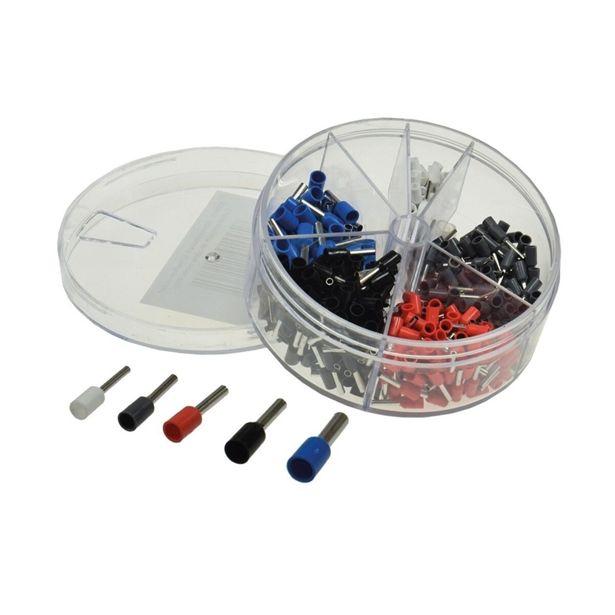 Das Aderendhülsen-Sortiment besteht aus 400 isolierten Aderendhülsen in den Größen 0,5mm² bis 2,5mm², die in einer praktischen Entnahmebox sortiert und aufbewahrt werden. Die farblich isolierten Hülsen sorgen für eine sichere und saubere Verbindung von Litzenkabeln und bieten einen optimalen Kabelabschluss. Das Sortiment umfasst die folgenden Größen: