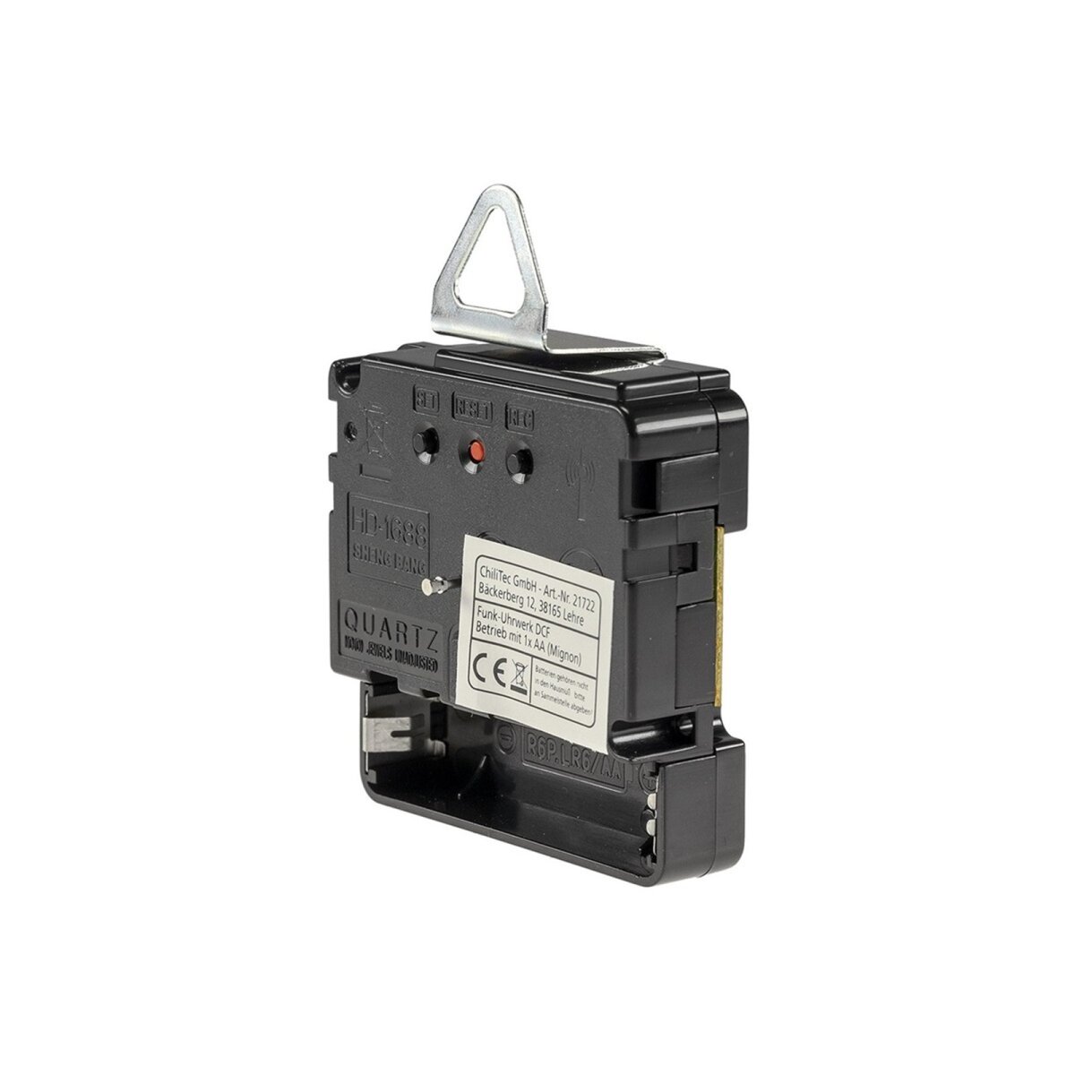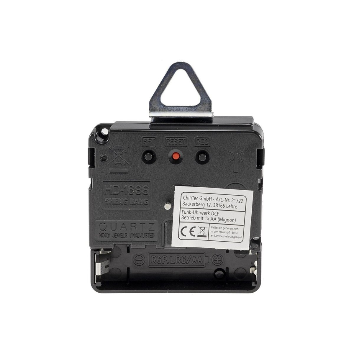Der Betrieb erfolgt über eine AA Batterie, wodurch das Uhrwerk flexibel und unabhängig von Stromanschlüssen eingesetzt werden kann.