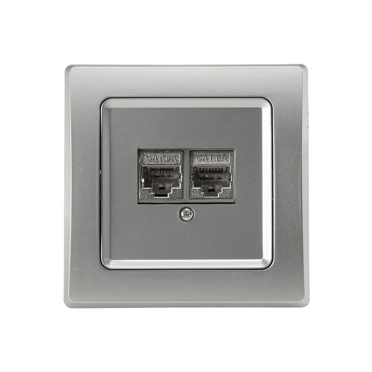 Leistungsstark und stilvoll: Die DELPHI Netzwerk-Dose 2x CAT6 in Silber / Silbergrau ist die ideale Lösung für moderne Netzwerkinstallationen. Zwei RJ45-Anschlüsse nach CAT6-Standard ermöglichen stabile Gigabit-Verbindungen bis 300 MHz.