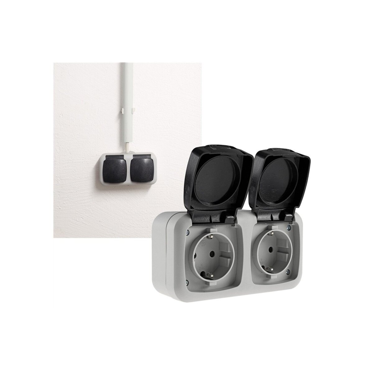 • Doppel Feuchtraum Steckdose IP44