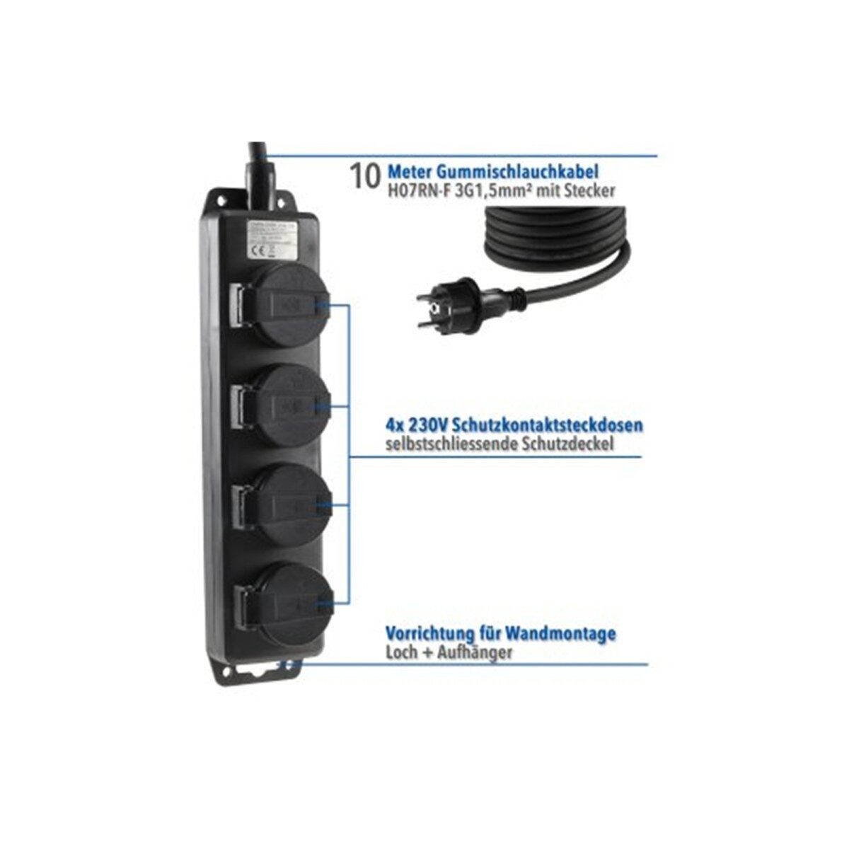 - Zuleitung: 10 m H07RN-F 3G1,5 mm² Gummischlauchleitung