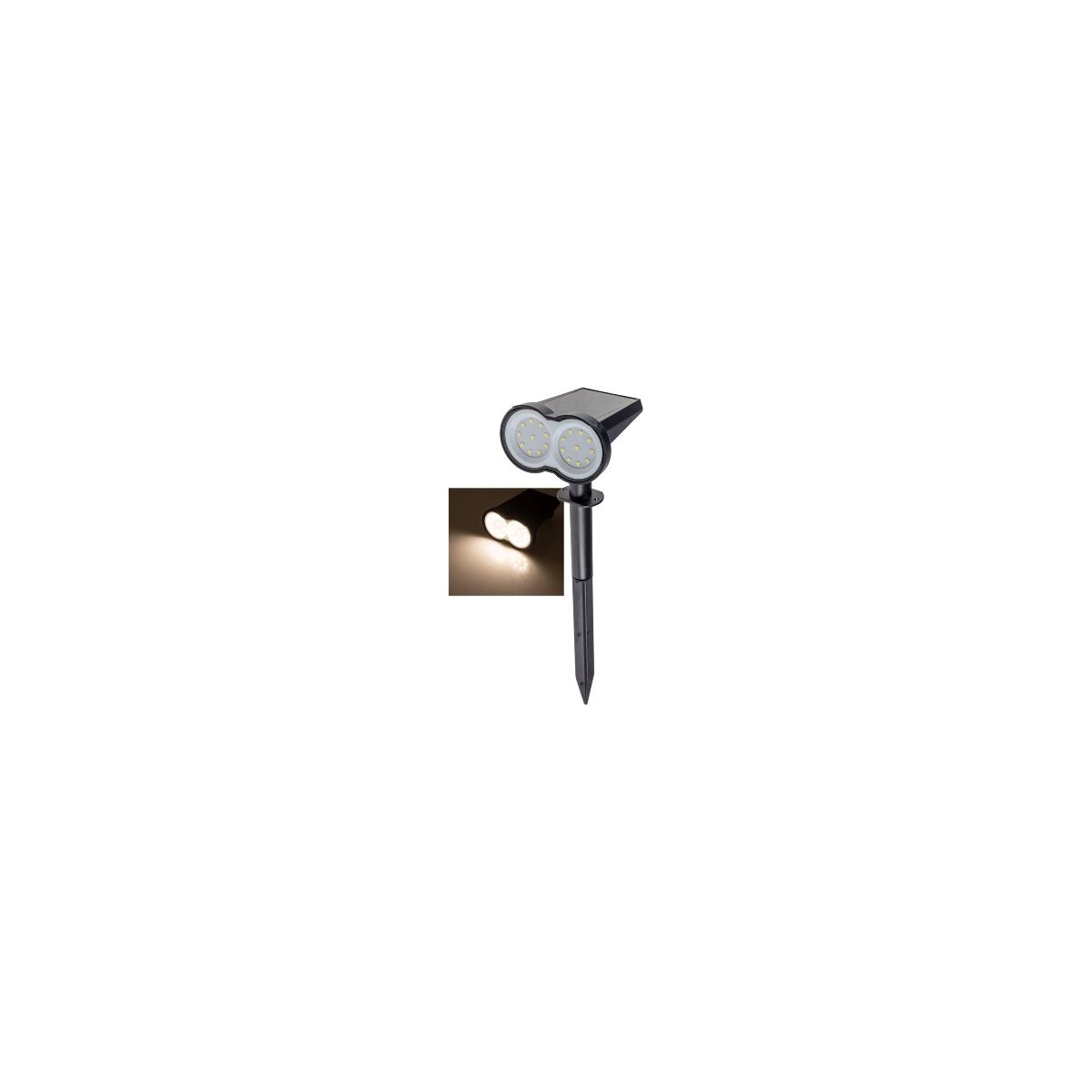 Der Gartenstrahler Solar mit Erdspieß ist die ideale Beleuchtungslösung für Garten, Beet oder Wege. Mit seinem warmweißen Licht sorgt er für stimmungsvolle Akzente in der Dämmerung und bei Nacht – ganz ohne Stromanschluss. Dank Dämmerungssensor schaltet sich die Leuchte automatisch ein. Der verstellbare Leuchtenkopf mit Kugelgelenk ermöglicht die gezielte Ausrichtung auf Bäume, Sträucher oder Objekte.