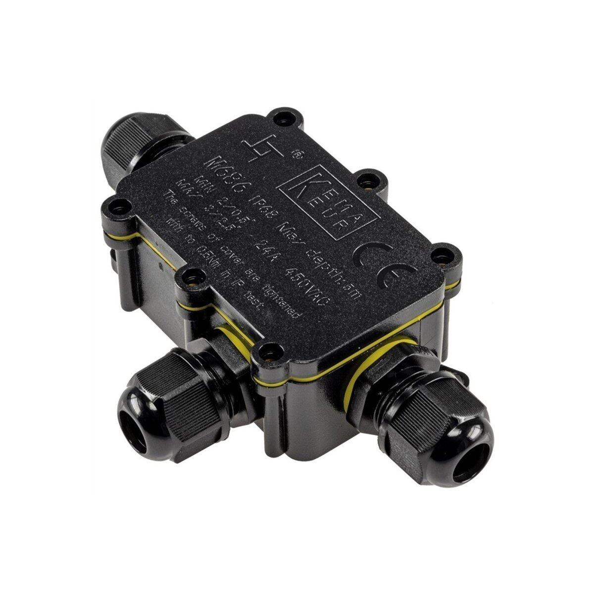Die Kabelverbinderbox mit 3 Anschlüssen (T-Verbinder) ist eine praktische Lösung für die sichere Verbindung von Erdkabeln. Sie verfügt über einen Eingang und zwei Ausgänge, wodurch sie für verschiedene Verkabelungsanforderungen im Außenbereich optimal geeignet ist. Mit IP68-Schutz ist die Box wasserdicht und schützt die Verbindungen zuverlässig vor Feuchtigkeit und Schmutz. Sie ist ideal für den Außenbereich, insbesondere für Erdkabel mit einem Durchmesser von 6-11mm. Die Box ist 3-polig und wird mit einer Lüsterklemme und Schrauben zur Befestigung geliefert. Das stabile Kunststoffgehäuse sorgt für Langlebigkeit und Witterungsbeständigkeit. Mit den Maßen 155x90x40mm bietet die Box ausreichend Platz für Ihre Kabelverbindungen.