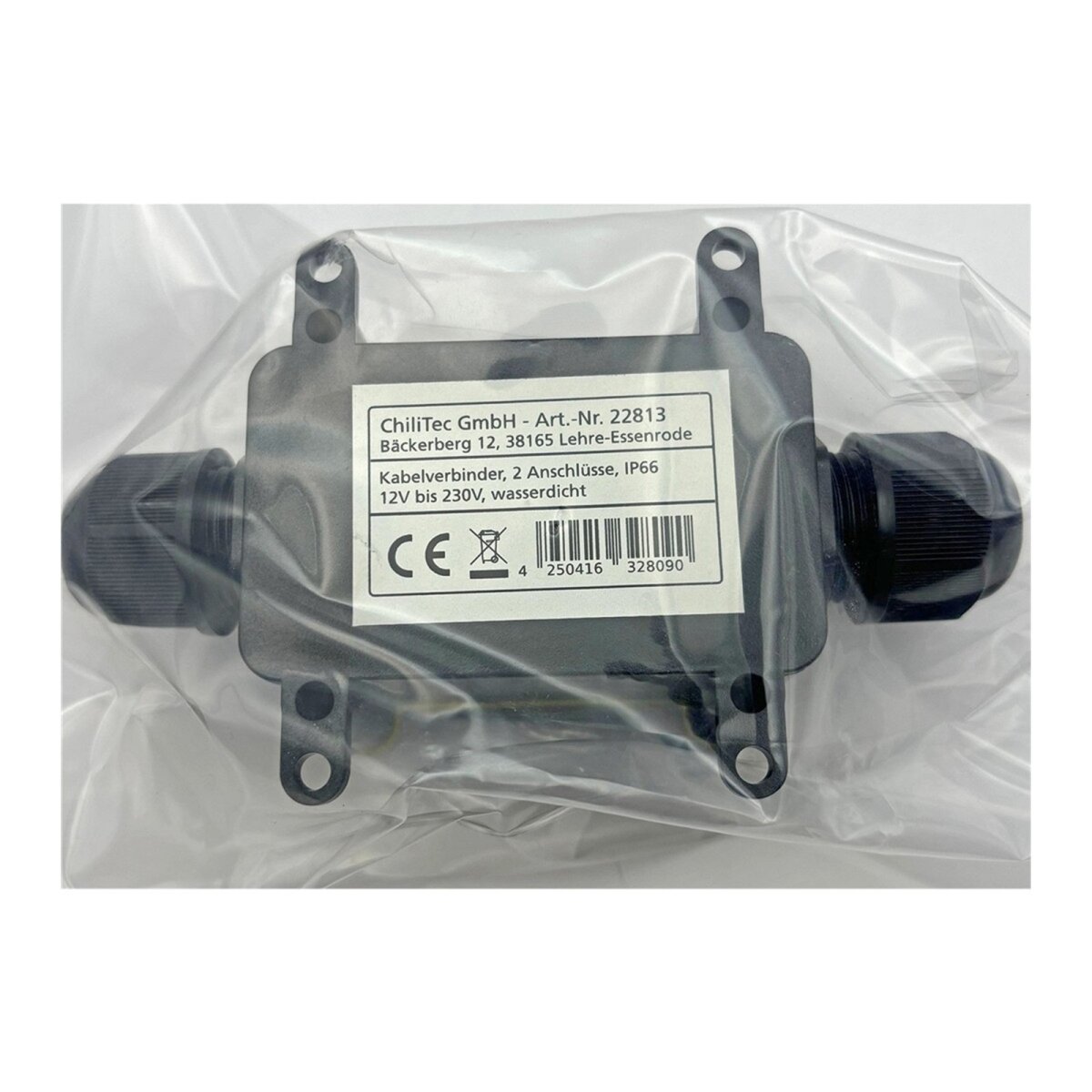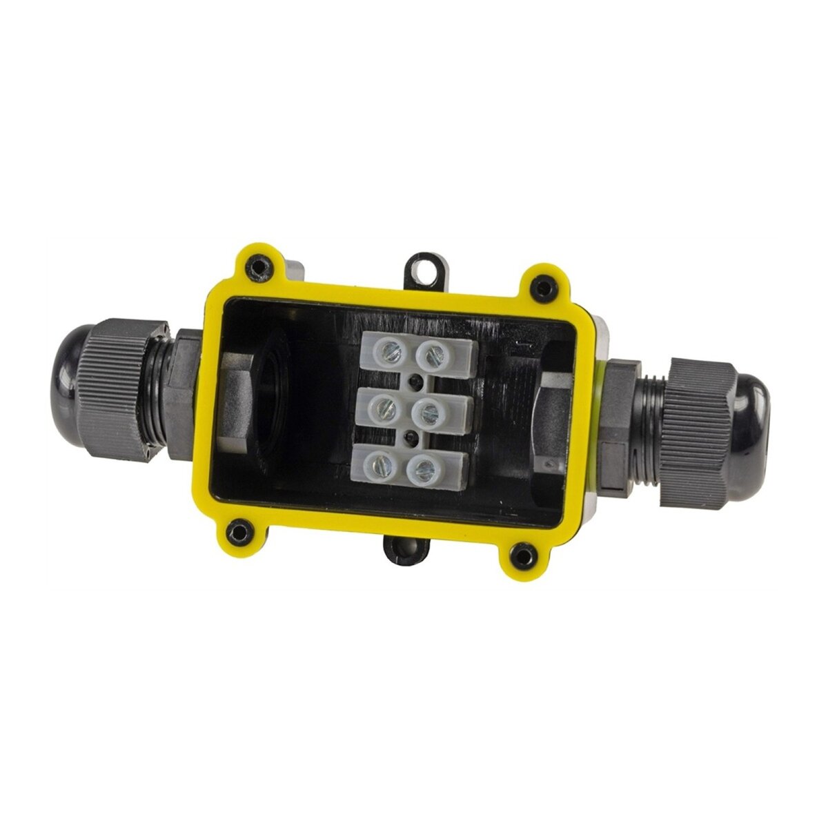 Der gerade Durchgangsanschluss (1 Eingang + 1 Ausgang) ermöglicht eine einfache Verbindung von zwei Kabelenden mit einem Durchmesser von 6–11 mm. Das stabile Kunststoffgehäuse sorgt für eine lange Lebensdauer und schützt zuverlässig vor Umwelteinflüssen.