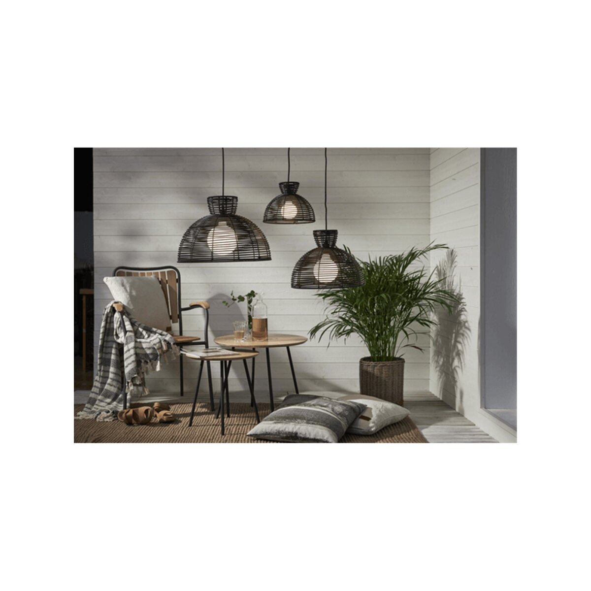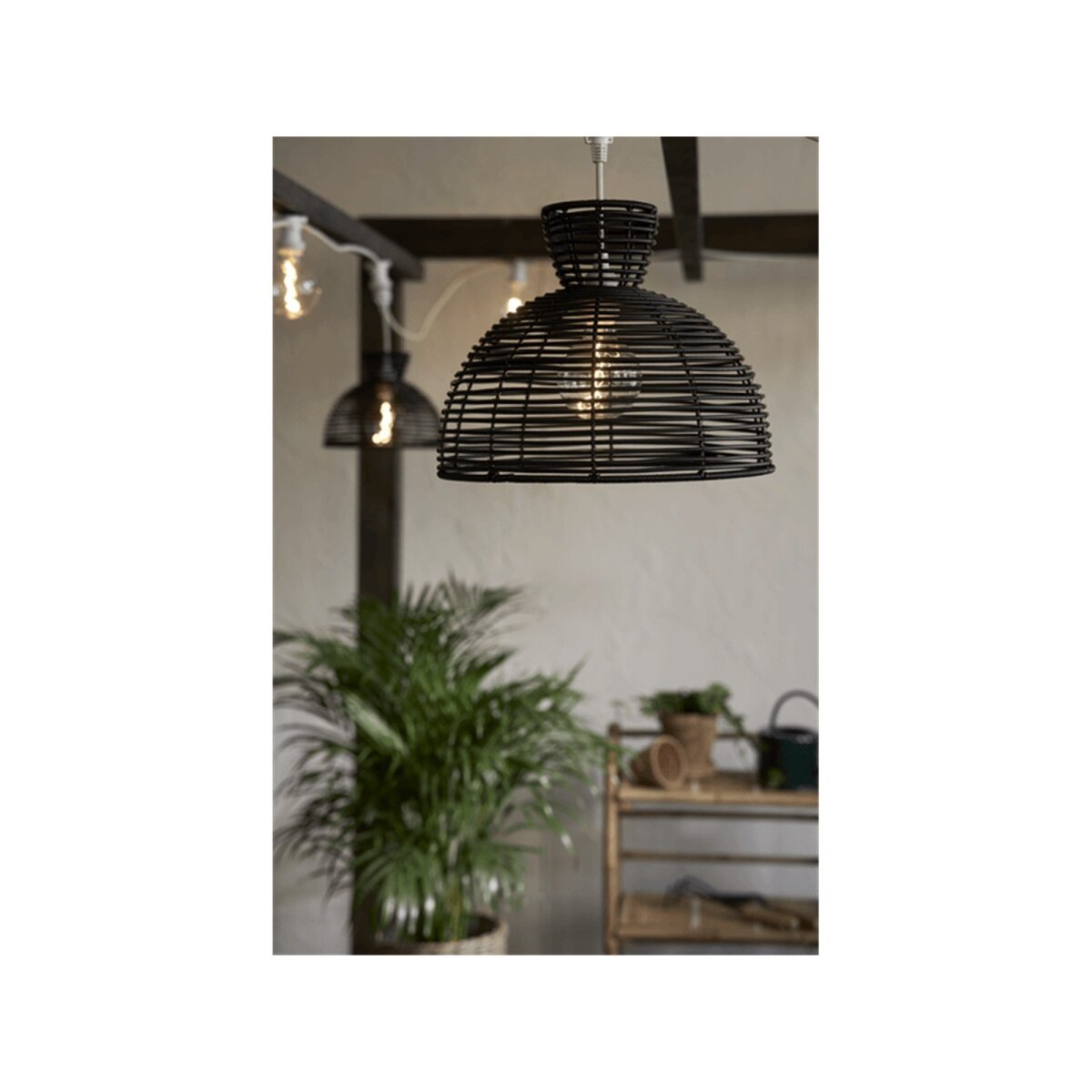 Der Lampenschirm „Runde“ kombiniert modernes Design mit wetterfestem PE-Rattan und eignet sich ideal für stilvolle Außenbeleuchtung. Mit seinem Durchmesser von 37,5 cm und der eleganten schwarzen Oberfläche passt er perfekt zu E27-Leuchtmitteln und Outdoor-Kabelsets.
