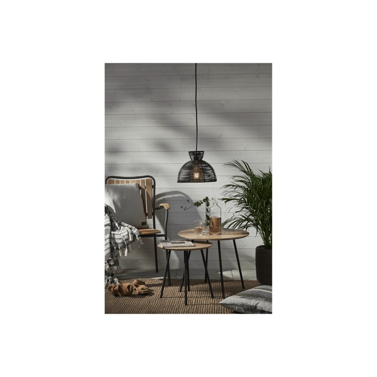 - 1 × Lampenschirm „Runde“ aus schwarzem PE-Rattan