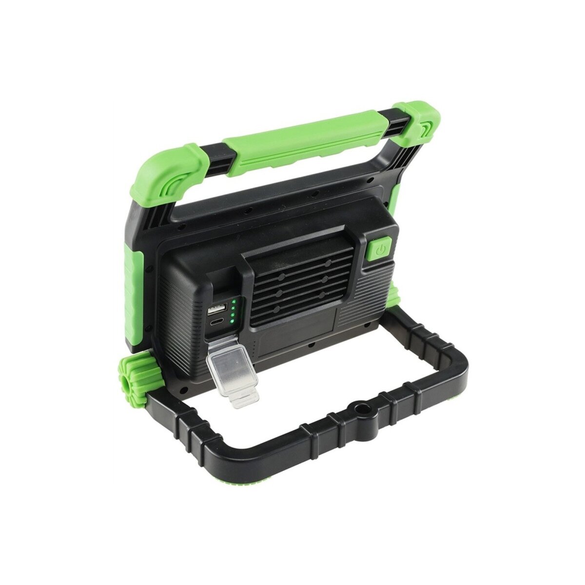 Der integrierte Lithium-Ionen-Akku mit 7500?mAh sorgt für eine Leuchtdauer von bis zu 4 Stunden im Energiesparmodus. Über den praktischen Tragegriff und den stabilen Standfuß kann der Baustrahler flexibel positioniert werden. Die IP54-Schutzart macht ihn zudem staub- und spritzwassergeschützt.
