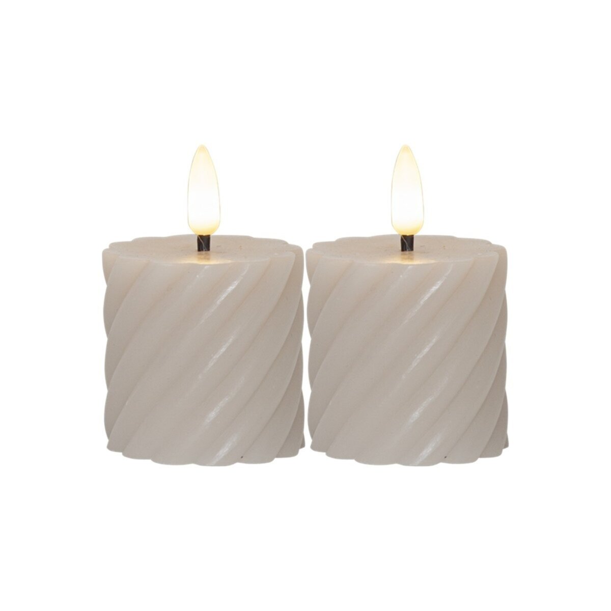 Die grauen LED-Kerzen im 2er-Set aus der beliebten "Flamme"-Serie bieten eine elegante Kombination aus echtem Wachs und moderner LED-Technologie. Das spiralförmige Muster verleiht den Kerzen eine edle, handgearbeitete Optik – ideal für Wohnbereiche, Fensterbänke oder festliche Dekorationen.