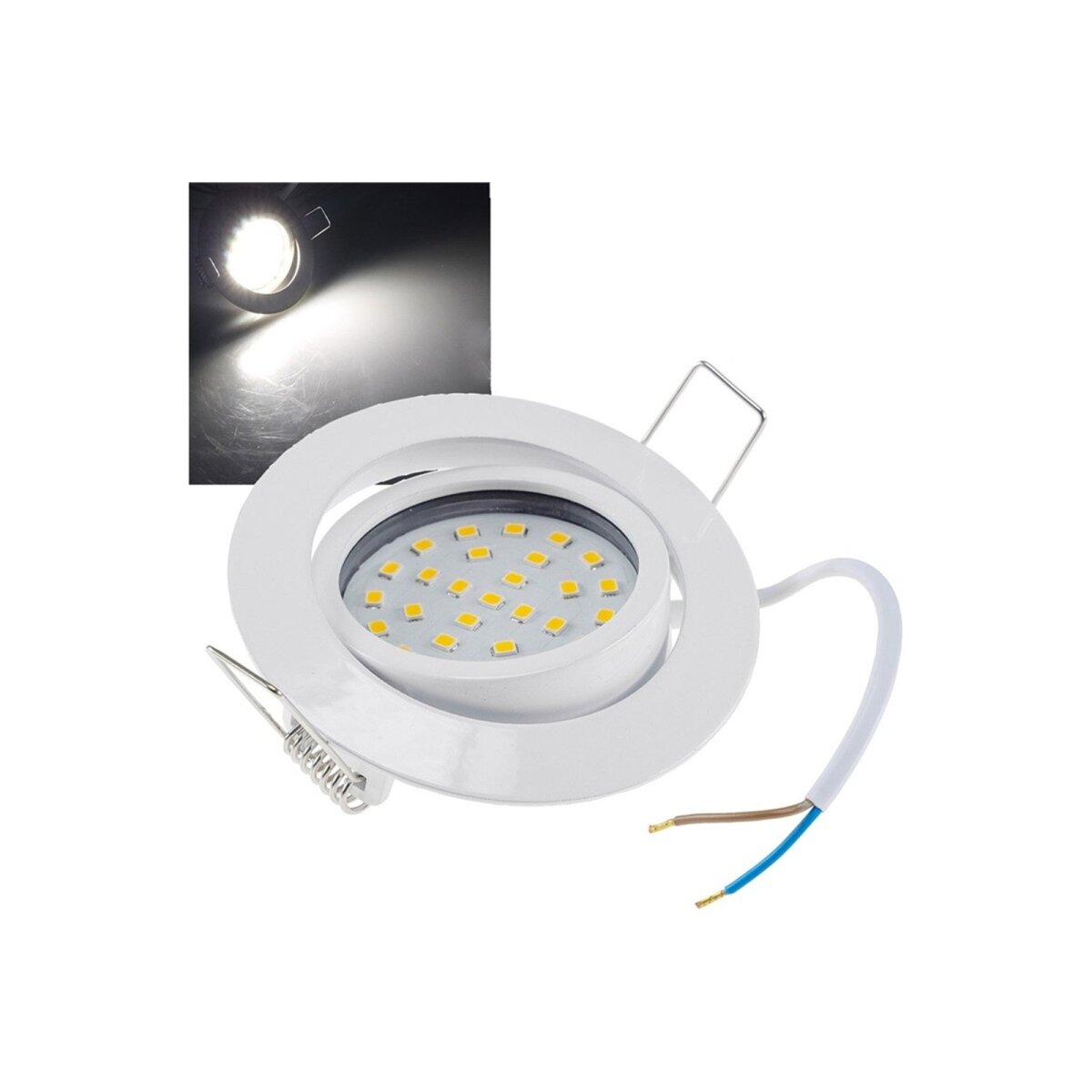 Die Farbtemperatur von 4000K erzeugt ein neutralweißes Licht, das ideal für Arbeits- und Wohnbereiche geeignet ist. Die hochwertige Verarbeitung und der schwenkbare Einsatz ermöglichen eine flexible Ausrichtung für eine optimale Beleuchtung. Die Leuchte ist nicht dimmbar und für trockene Innenräume geeignet.