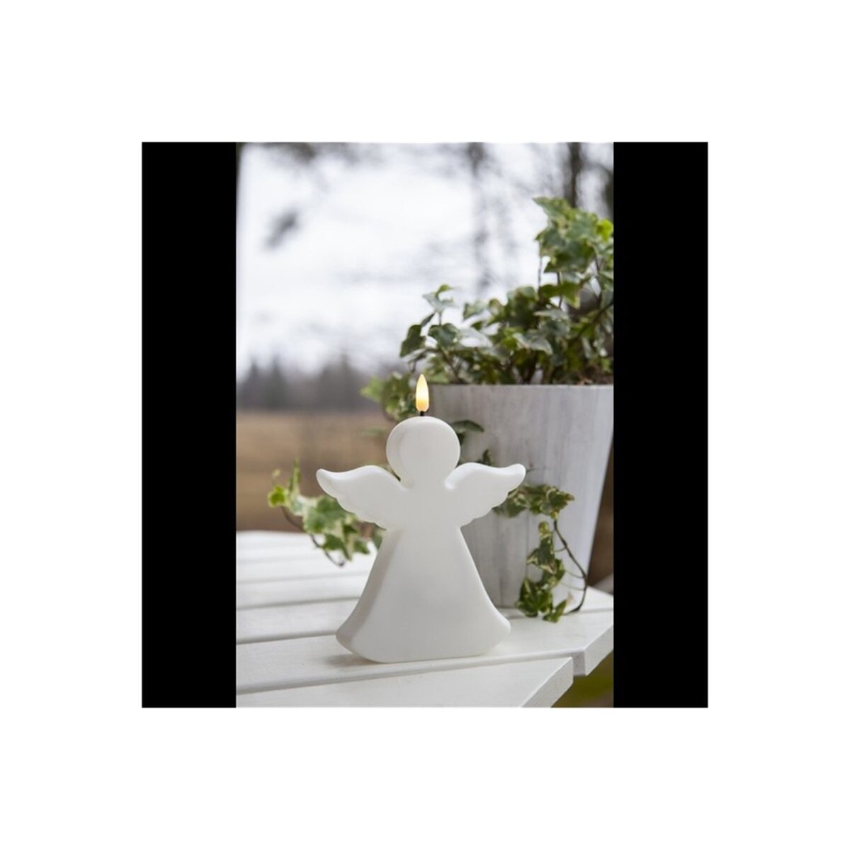 Diese stilvolle Engelskerze mit LED gehört zur beliebten „Flamme“-Familie und vereint emotionales Design mit praktischer Technologie. Gefertigt aus wetterfestem Kunststoff und ausgestattet mit einem sanften warmweißen LED-Licht, spendet sie eine friedvolle Atmosphäre – sowohl im Innen- als auch Außenbereich.