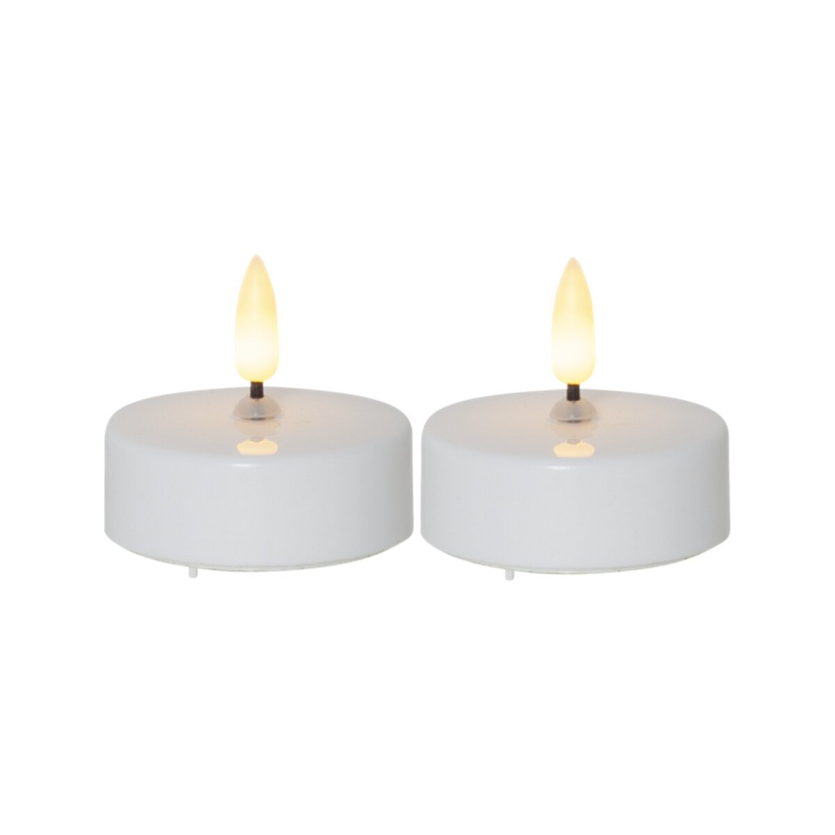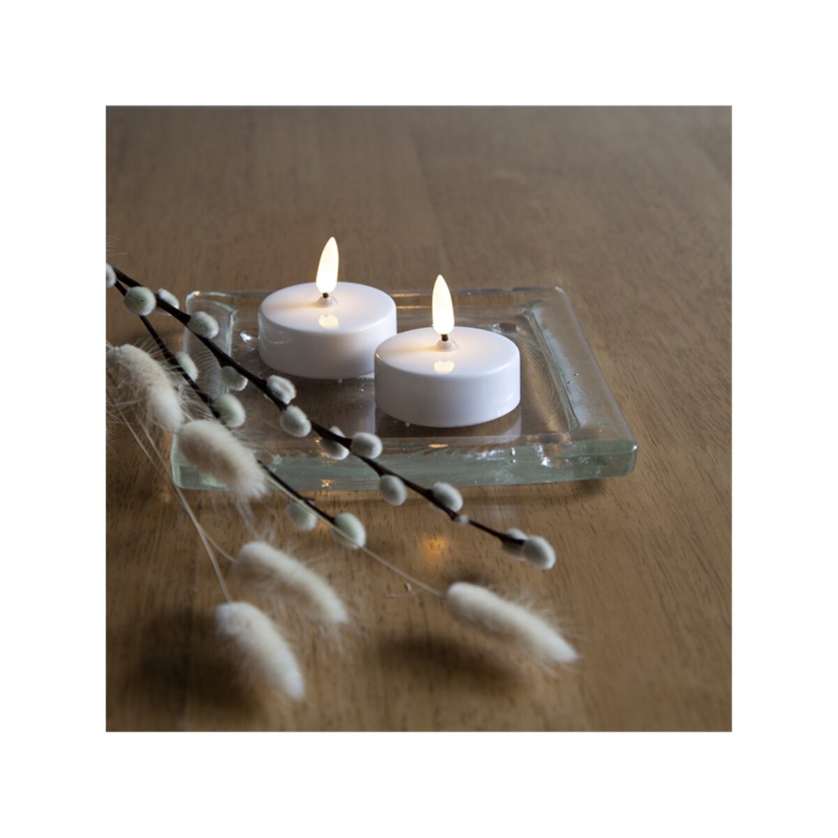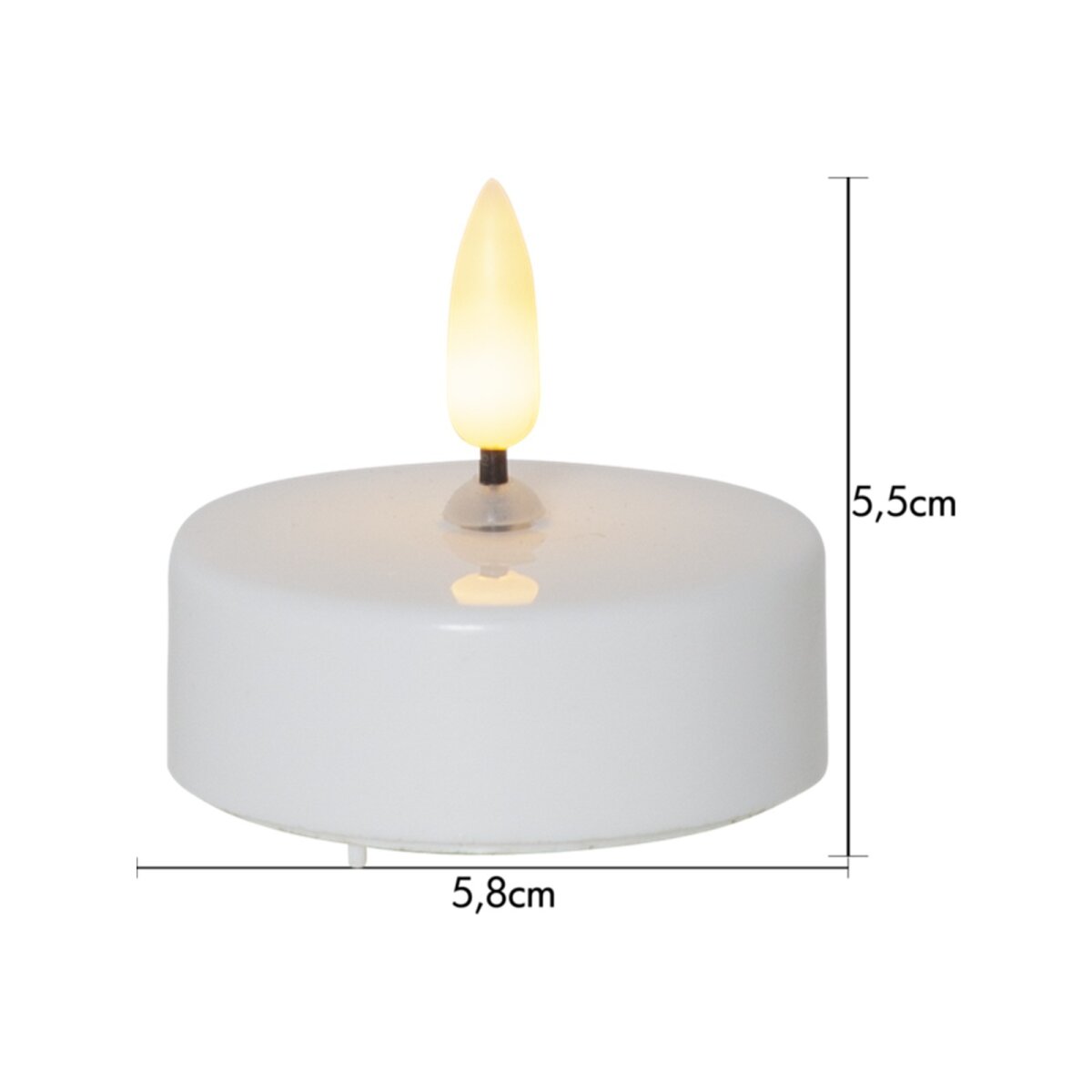 Das LED Teelichter 2er Pack mit einem Durchmesser von 5,8 cm sorgt für eine besonders natürliche Lichtwirkung – ideal für große Windlichter, Dekogläser oder festliche Tischdekorationen.