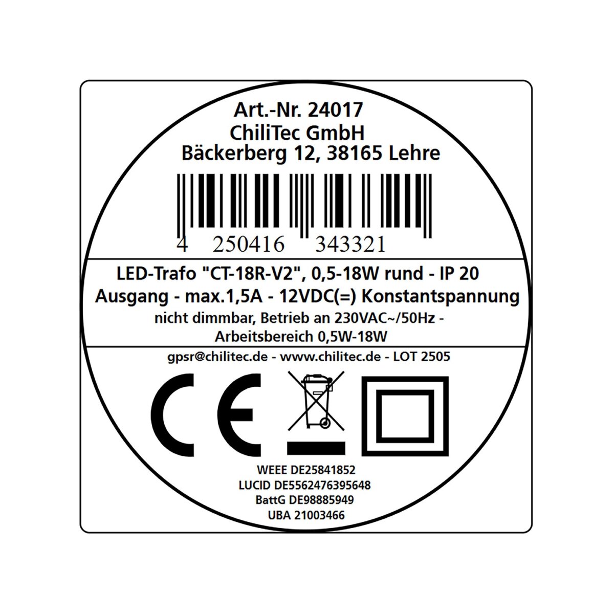 LED-Trafo CT-18E – Slimline Konstantspannungs-Trafo für 12V LEDs