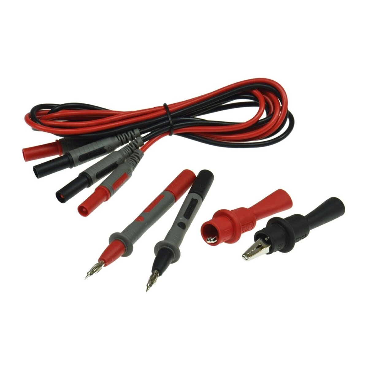 Das Messgeräte-Prüfleitungsset "Profi" besteht aus hochwertigen PVC-Messleitungen und bietet alles, was für eine präzise Messung in professionellen Umgebungen benötigt wird. Mit einer Länge von 120cm und Sicherheits-Steckern bieten die Messleitungen hohe Flexibilität. Zudem enthält das Set Prüfspitzen mit Federkorb und kleine Krokodilklemmen für einfaches und sicheres Arbeiten. Ideal für Elektroniktests, Laboranwendungen oder Reparaturen.