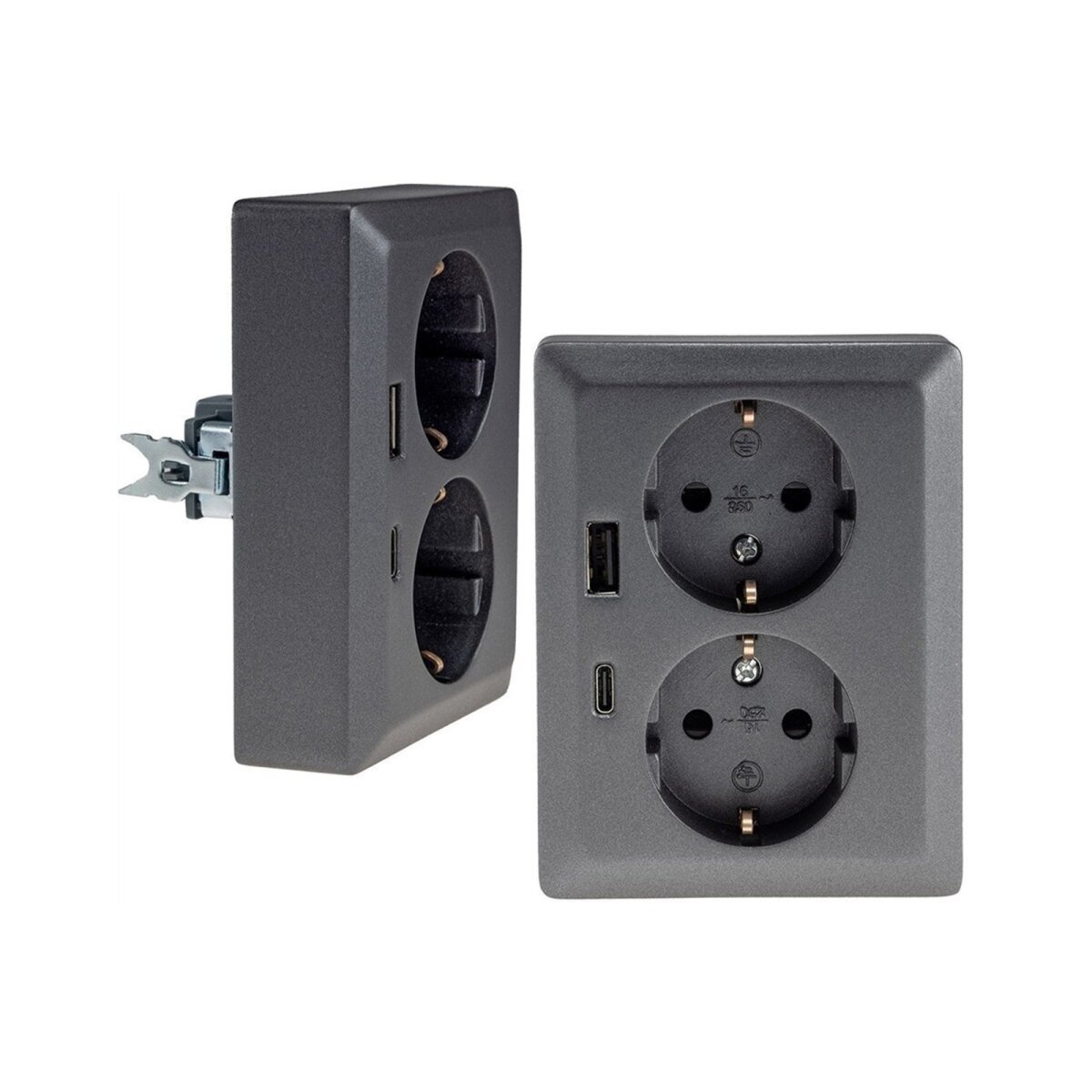 - 1 x MILOS Schutzkontakt-Steckdose 2-fach mit USB A + USB C/PD Anthrazit