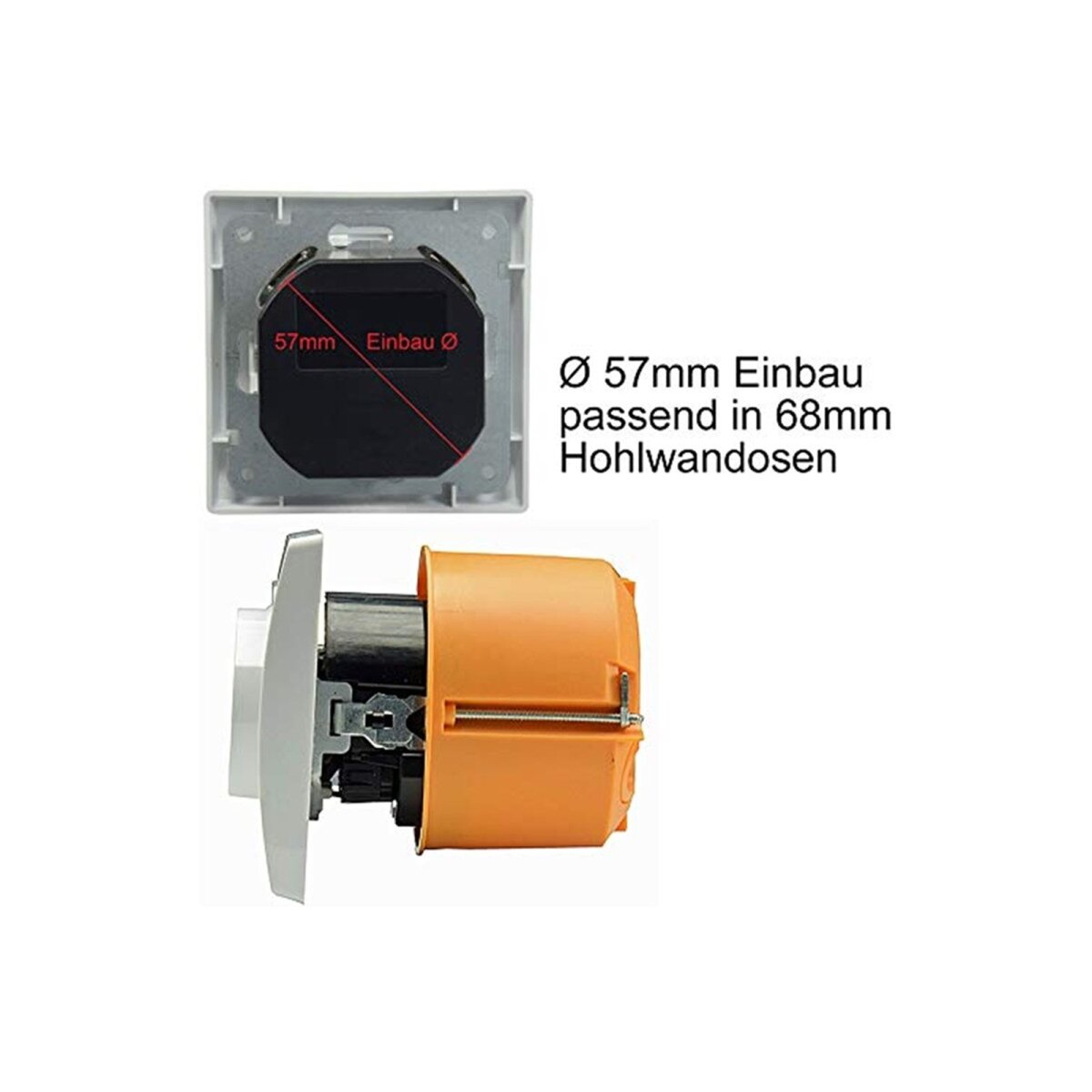 Erforderliche UP-Dose: mindestens 47 mm Tiefe