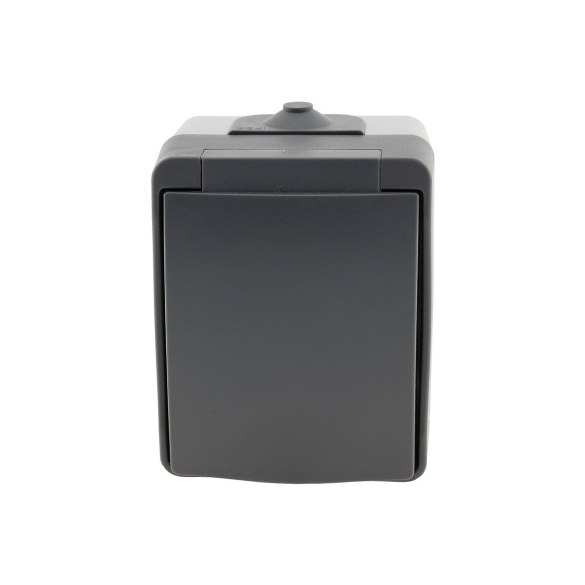 Der zweifarbige Aufputz-Rahmen mit dunkelgrauem Deckel bietet eine moderne Optik, während die Federschließung zusätzlichen Schutz gegen Feuchtigkeit bietet. Die Steckdose ist ausgelegt für eine Belastung bis 16A / 3600W bei 250V~ und lässt sich durch schraubenlose Terminals besonders schnell und sicher montieren.