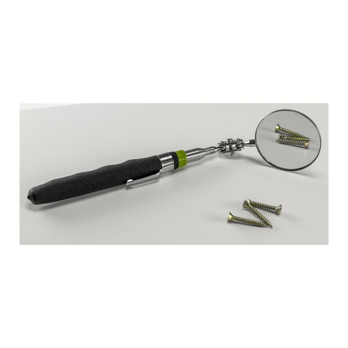 Das Pick-up Teleskop-Tool Set "CT-3-in-1" bietet Ihnen die perfekte Lösung für alle kniffligen Situationen, in denen Sie etwas aus den hintersten Ecken, unter Schränken oder aus anderen schwer erreichbaren Bereichen aufheben müssen. Das Set umfasst drei vielseitige Werkzeuge: einen LED-Magnet, einen Spiegel und einen flexiblen Greifer. Der LED-Magnet ist von 20 bis 80 cm ausziehbar und bietet eine Zugkraft von ca. 3,2 kg, während die LED auf der Front für zusätzliche Beleuchtung sorgt. Der Spiegel ist mit einem 2-fach Kugelgelenk ausgestattet und hat eine ausziehbare Länge von 16 bis 70 cm sowie eine Sichtfläche von 50 mm Durchmesser. Der flexible Greifer mit Schwanenhals ermöglicht das Greifen von kleinen Gegenständen bis zu einer Länge von 56 cm.