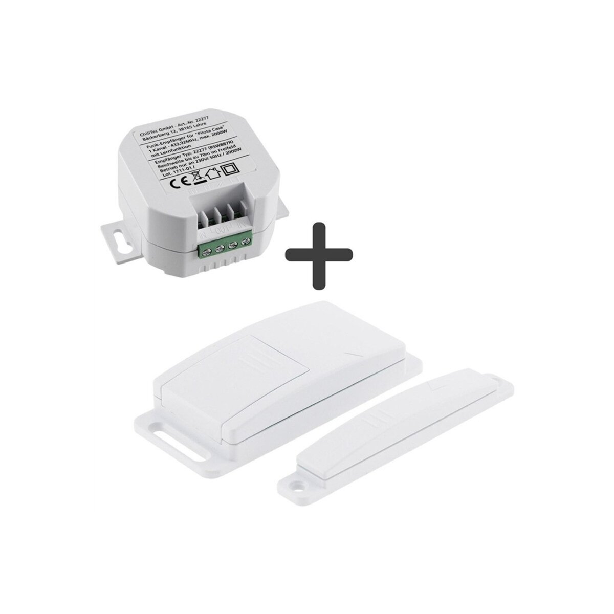 Der im Lieferumfang enthaltene Funk-Fensterkontakt wird kabellos am Fenster angebracht. Sobald das Fenster geöffnet wird, sendet der Sender ein Signal an den Empfänger, der daraufhin das angeschlossene Gerät (z. B. die Dunstabzugshaube) freischaltet. Wird das Fenster geschlossen, unterbricht der Empfänger automatisch die Stromzufuhr.