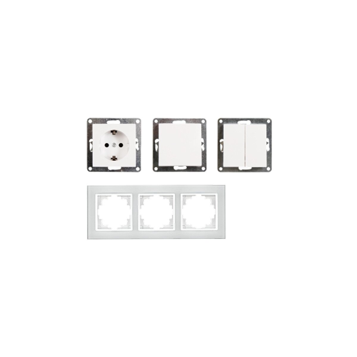 Dank der hochwertigen Verarbeitung und der präzisen Passform eignet sich das Set ideal für Wohnräume, Flure, Büros oder Renovierungsprojekte. Der dreifache Glasrahmen verbindet die einzelnen Elemente zu einer eleganten, einheitlichen Schalterfläche.