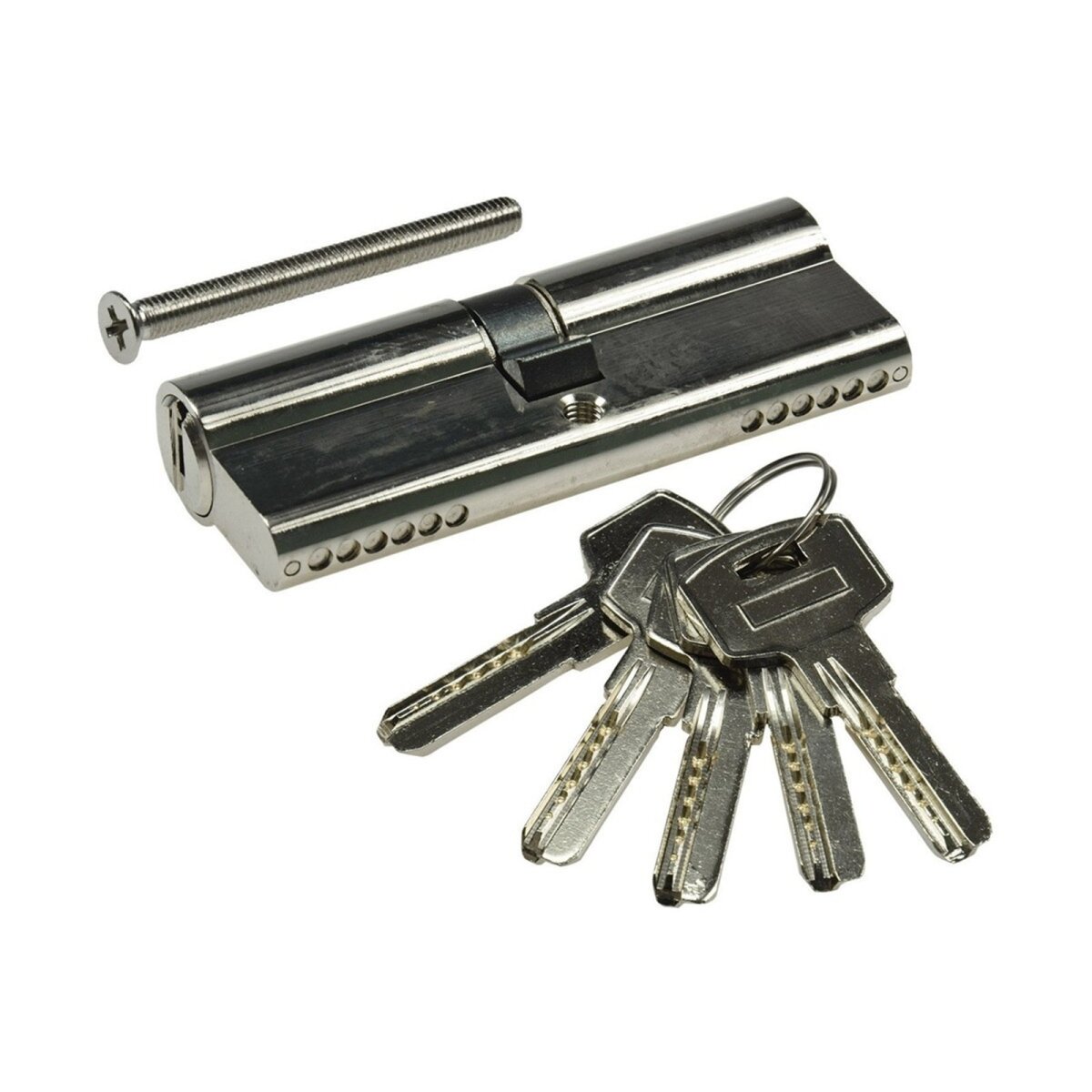 Der Schließzylinder 80mm (40+40mm) von ChiliTec ist ein hochwertiger Profil-Sicherheits-Schließzylinder mit 5 Sicherheits-Schlüsseln. Durch die 8 Positionen der Schlüssel wird die Nachahmung von Schlüsseln erschwert und Ihre Sicherheit maßgeblich erhöht. Mit einem 6-Stift-Zylinder bietet dieser Zylinder höchsten Schutz. Der massive Messingzylinder mit einer sanierten Nickel-Beschichtung sorgt für lange Haltbarkeit und eine hohe Widerstandsfähigkeit gegen Abnutzung. Der Zylinder ist sowohl für Innentüren als auch Außentüren geeignet und lässt sich in DIN Einsteckschlössern verwenden. Besonders hervorzuheben ist die hohe Sicherheit dank des 8-stelligen Schließsystems, das eine hohe Anzahl an Kombinationen ermöglicht.
