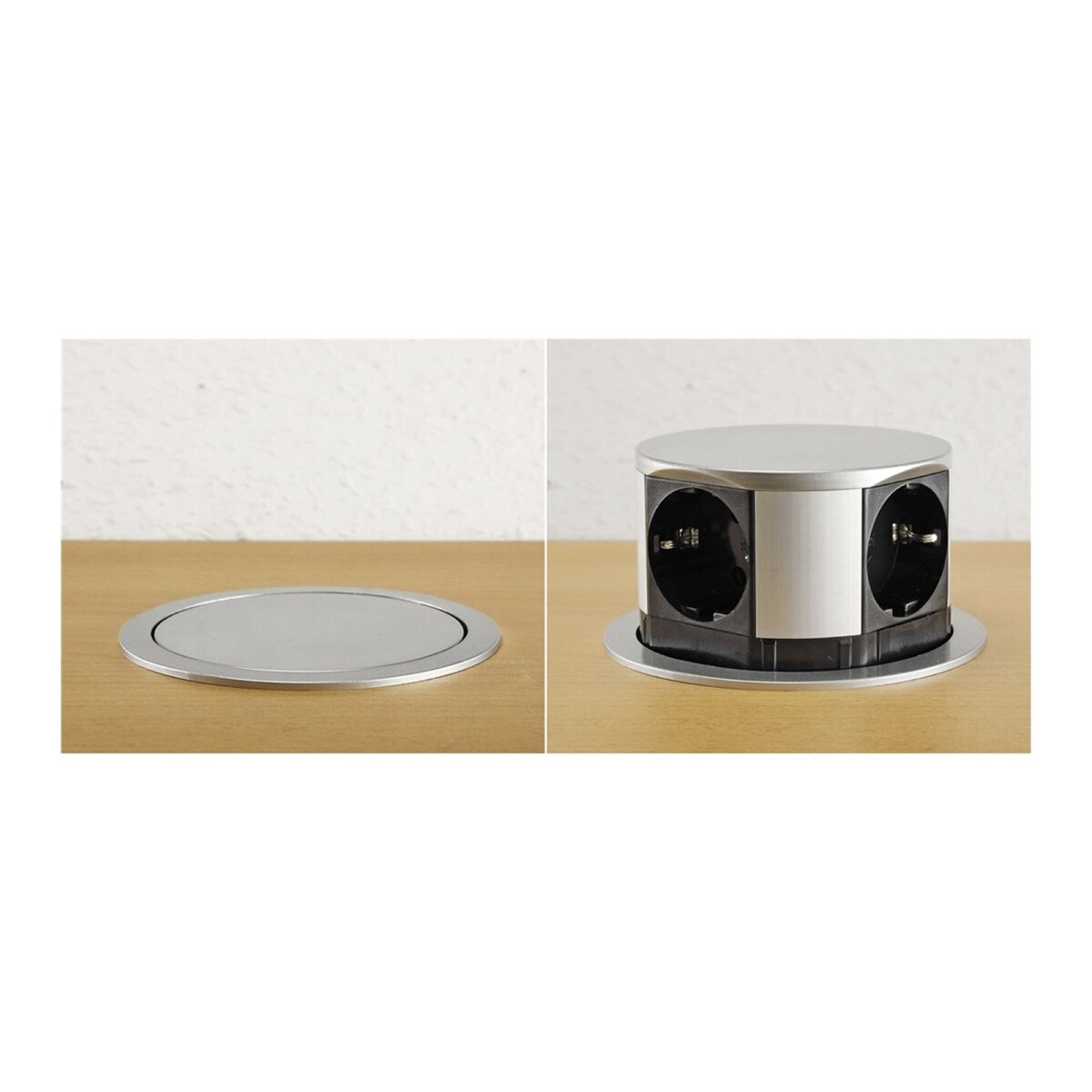 Die versenkbare 4-fach Schreibtisch-Steckdose ermöglicht eine saubere und ordentliche Stromversorgung, die bei Bedarf herausgefahren werden kann. Mit 4 Schutzkontakt-Steckdosen für eine maximale Leistung von 16A/3.600W eignet sich diese Steckdose perfekt für den Einsatz auf Arbeitsplatten oder Werkbänken. Das 1,5m lange Anschlusskabel mit Schutzkontakt-Stecker sorgt für eine sichere Verbindung. Der Einbau erfolgt durch ein Loch Ø 100mm, und die Einbaumaße von 115mm (Front) x 105mm (Tiefe) bieten eine einfache Integration. Die Aufbauhöhe beträgt 57mm, wenn die Steckdosen herausgefahren sind.