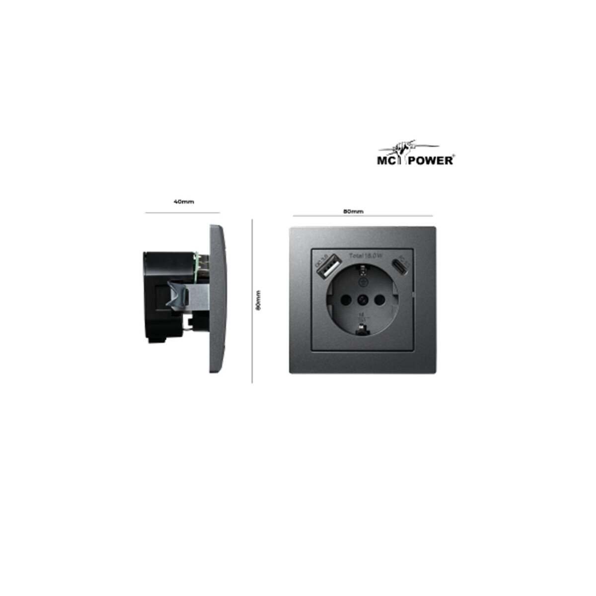 - 1× Schutzkontakt-Steckdose mit USB-C & USB-A in Anthrazit