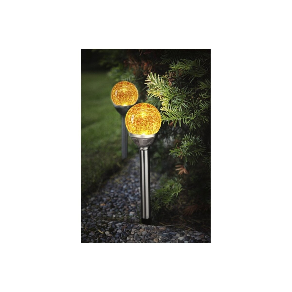 Der eingebaute Dämmerungssensor schaltet die Leuchten bei Einbruch der Dunkelheit automatisch ein und bei Tageslicht wieder aus. Die umweltfreundlichen Solarpaneele laden tagsüber die mitgelieferten NiMH-Akkus auf – für eine Leuchtdauer von bis zu 6 Stunden.