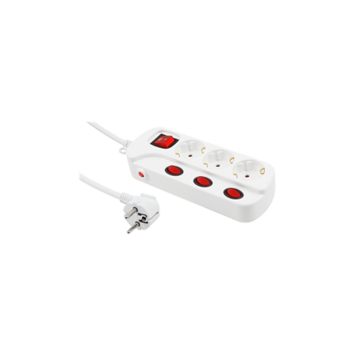Jede der drei Steckdosen lässt sich einzeln ein- und ausschalten, was eine besonders energieeffiziente Nutzung ermöglicht. Zusätzlich verfügt die Leiste über einen 2-poligen Hauptschalter, der die komplette Einheit zentral abschaltet. Die Steckplätze sind 45° gedreht, sodass selbst große Netzteile oder Winkelstecker problemlos Platz finden.