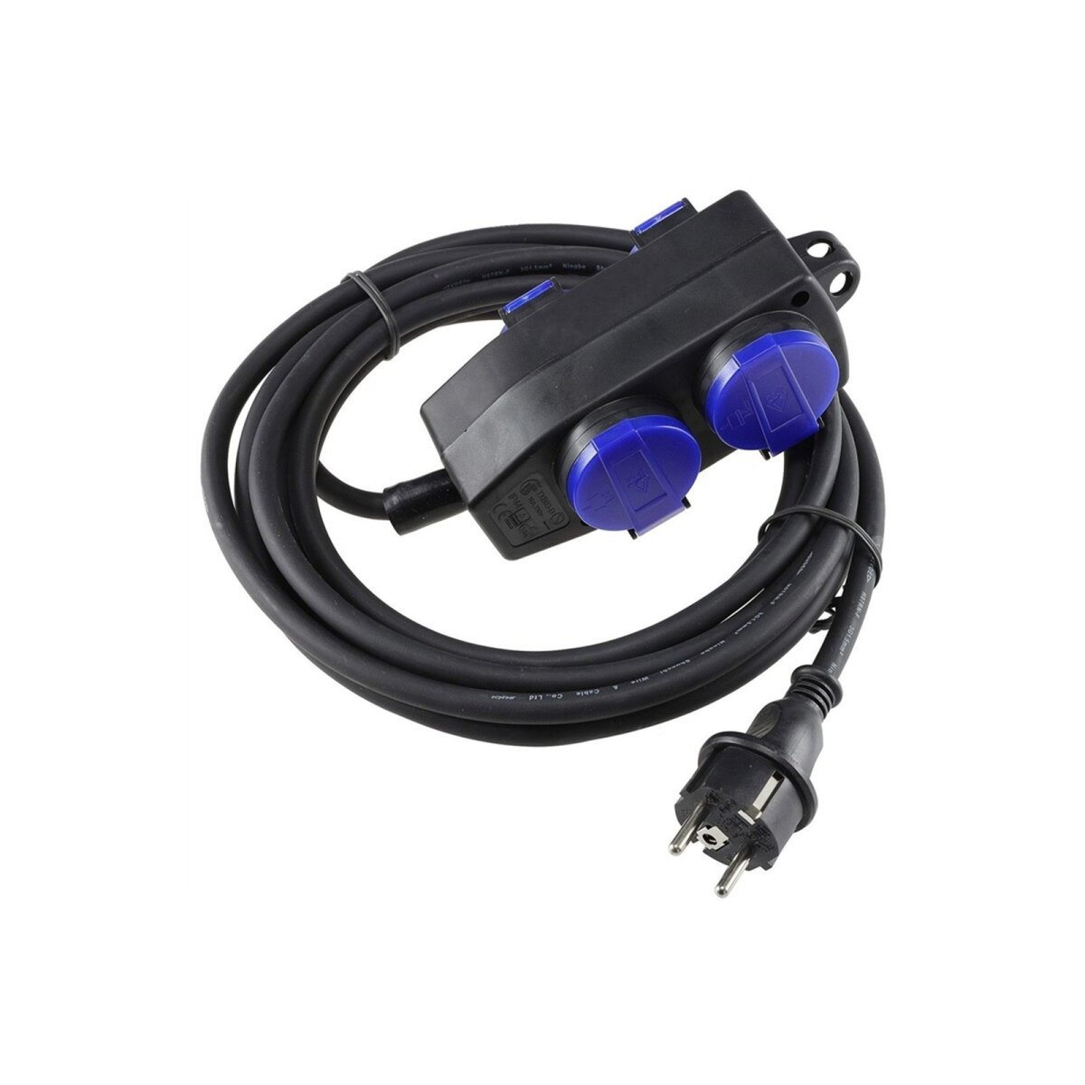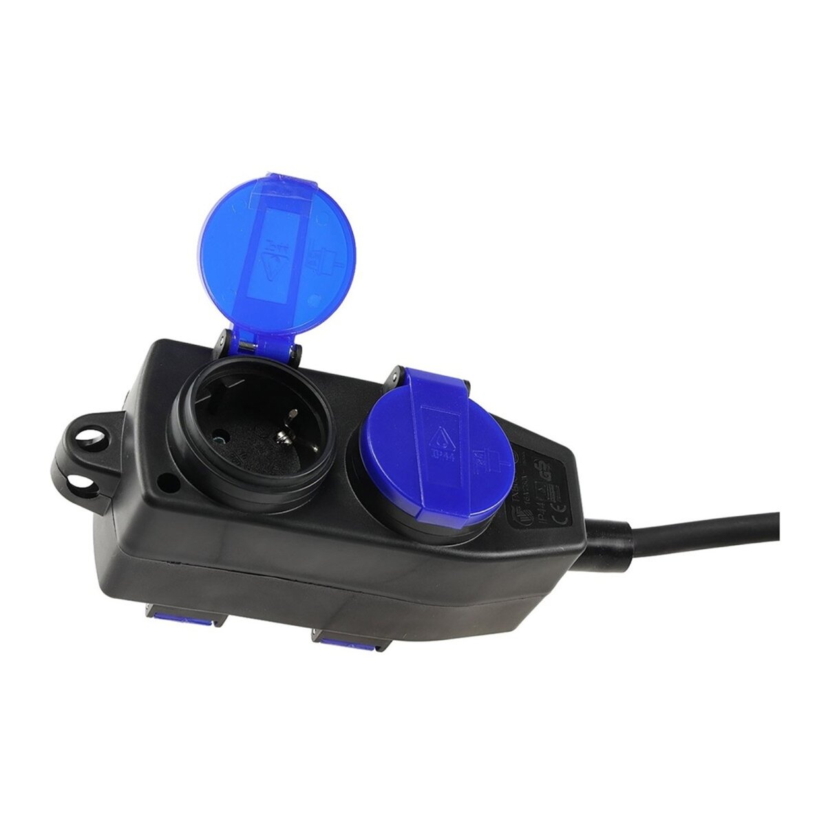Dank der selbstschließenden Klappdeckel sind die Steckdosen spritzwassergeschützt (IP44) und somit ideal für den Außenbereich geeignet. Mit einer Kabellänge von 5m und der robusten Gummileitung (H07RN-F 3G1,5mm²) ist die Steckdose äußerst belastbar und wetterbeständig – perfekt für den Einsatz unter anspruchsvollen Bedingungen. Sie wird mit 250V~, max. 16A / 3600W betrieben.