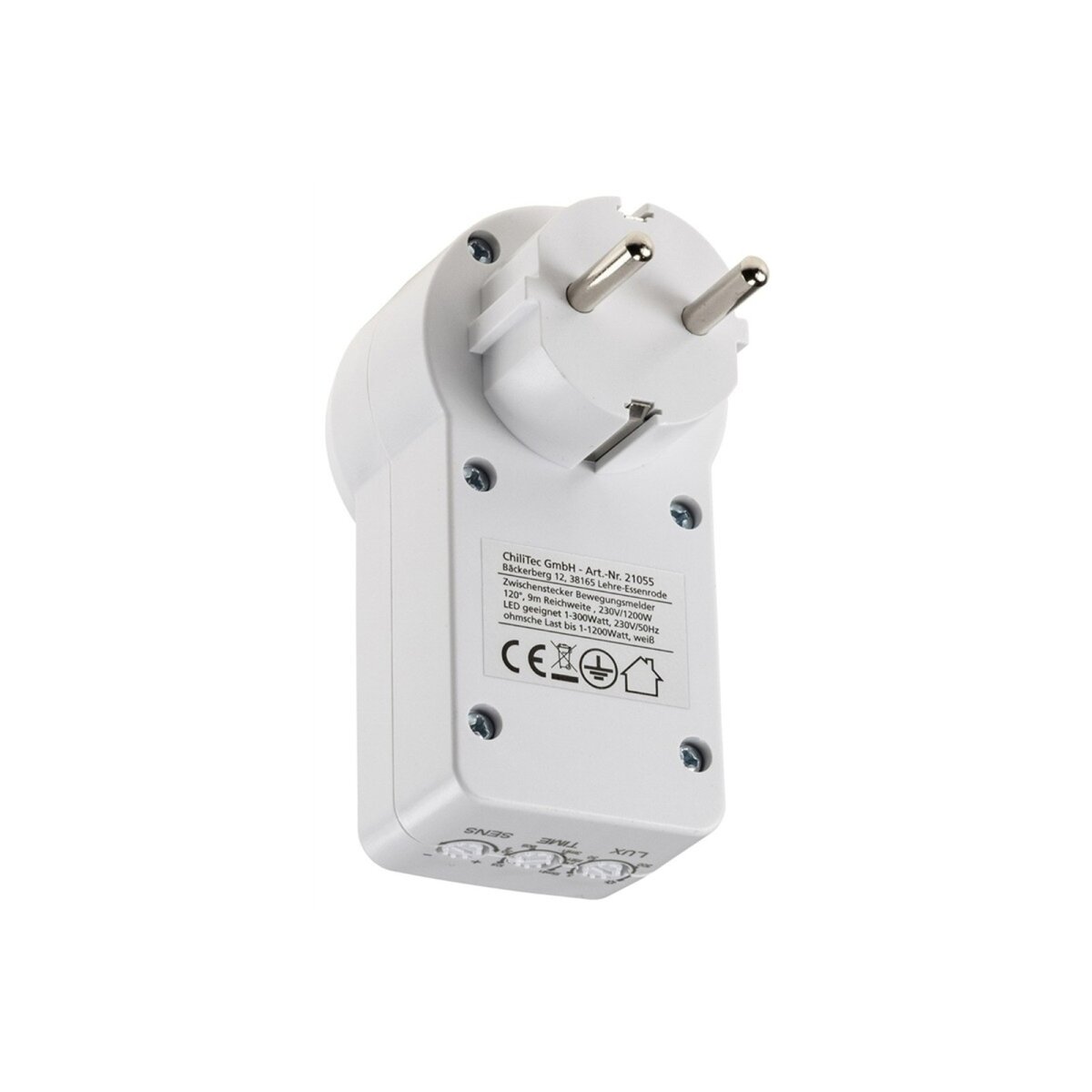 Der Zwischenstecker mit Bewegungsmelder 120° macht das manuelle Schalten überflüssig. Der integrierte PIR-Sensor sorgt dafür, dass Ihre Verbraucher wie Lichter oder Kellerbeleuchtung automatisch eingeschaltet werden, sobald Bewegung erkannt wird. Der Erfassungswinkel von 120° und eine Reichweite von 2-9m garantieren eine präzise Bewegungserkennung. Mit einem Maximalwert von 1200W für ohmsche Lasten und 300W für LED-Beleuchtung ist der Zwischenstecker vielseitig einsetzbar. Die Dämmerungs-Schaltschwelle und die Empfindlichkeit sind einstellbar, sodass der Bewegungsmelder nur bei den gewünschten Lichtverhältnissen aktiviert wird. Die Zeiteinstellung lässt sich von 10 Sekunden bis 15 Minuten anpassen, sodass die Beleuchtung so lange eingeschaltet bleibt, wie gewünscht. Der Standby-Verbrauch ist mit nur 0,5W minimal, was den Zwischenstecker energieeffizient macht. Der Schiebeschalter AUTO/ON/OFF ermöglicht eine einfache Bedienung. Mit den kompakten Maßen von 100x45x35mm lässt sich der Zwischenstecker einfach in jede Steckdose einsetzen. Der IP20-Schutz sorgt dafür, dass der Stecker für den Innenbereich geeignet ist.